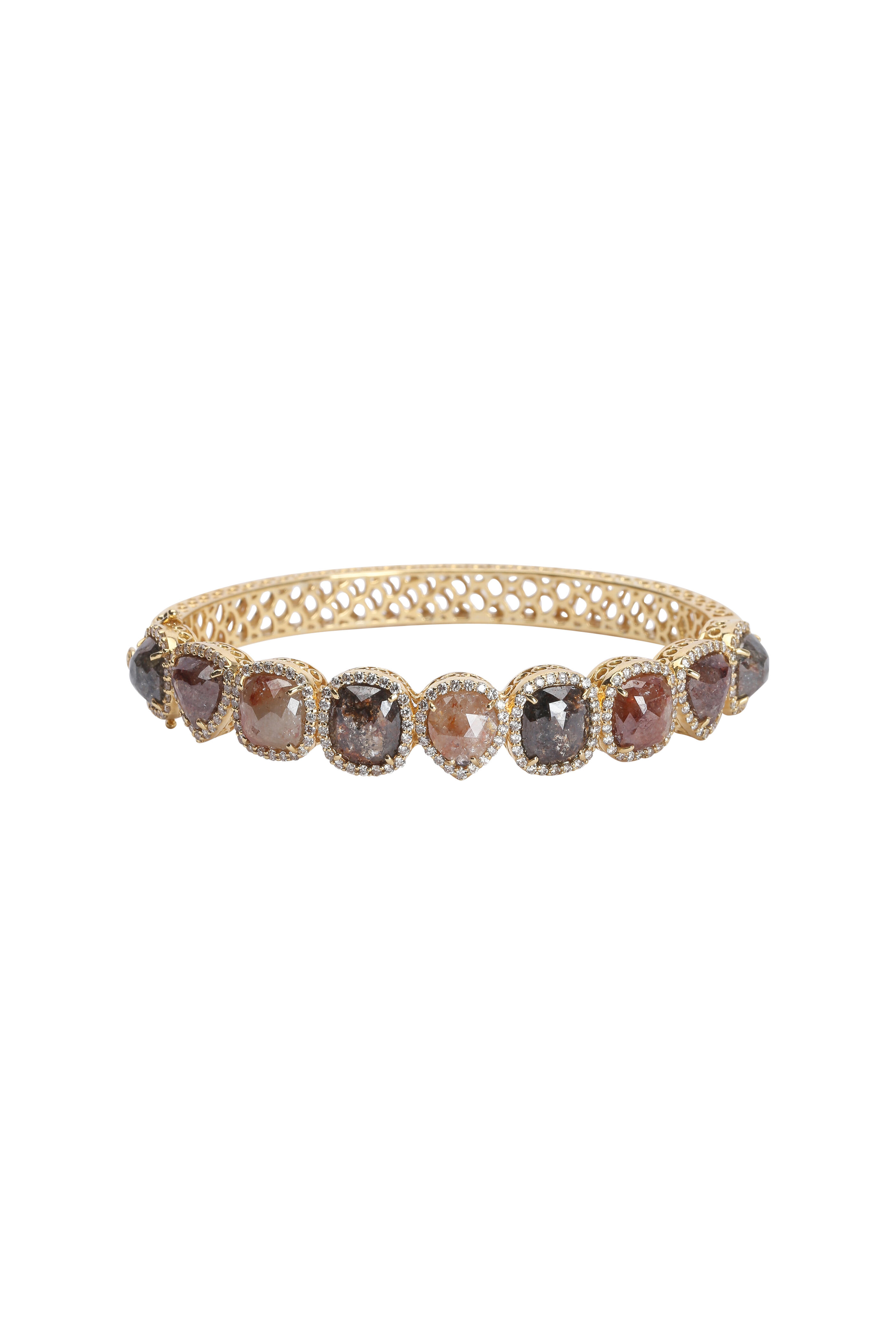 18K Yellow Gold Rough Diamond Bangle