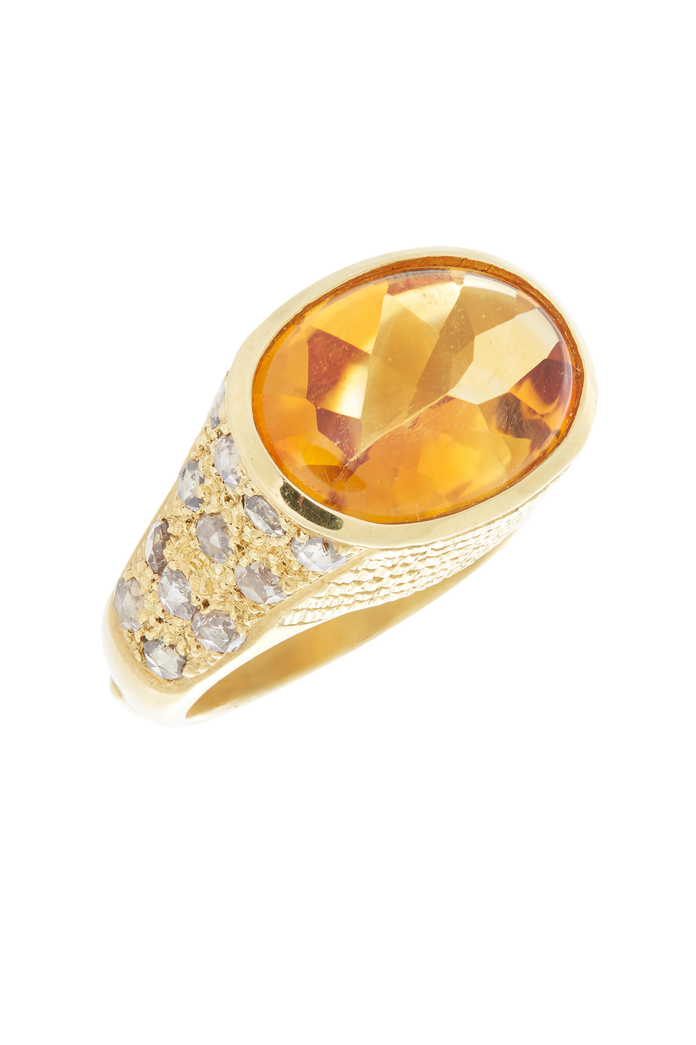20K yellow gold. Mandarin citrine. Diamond accents.