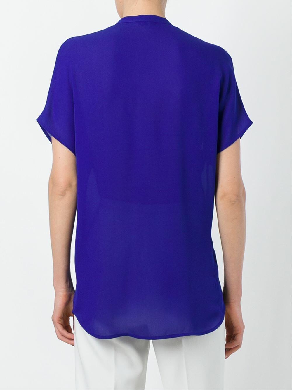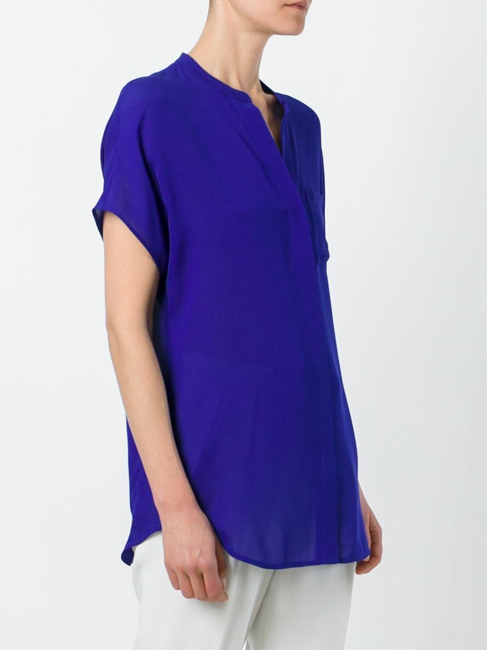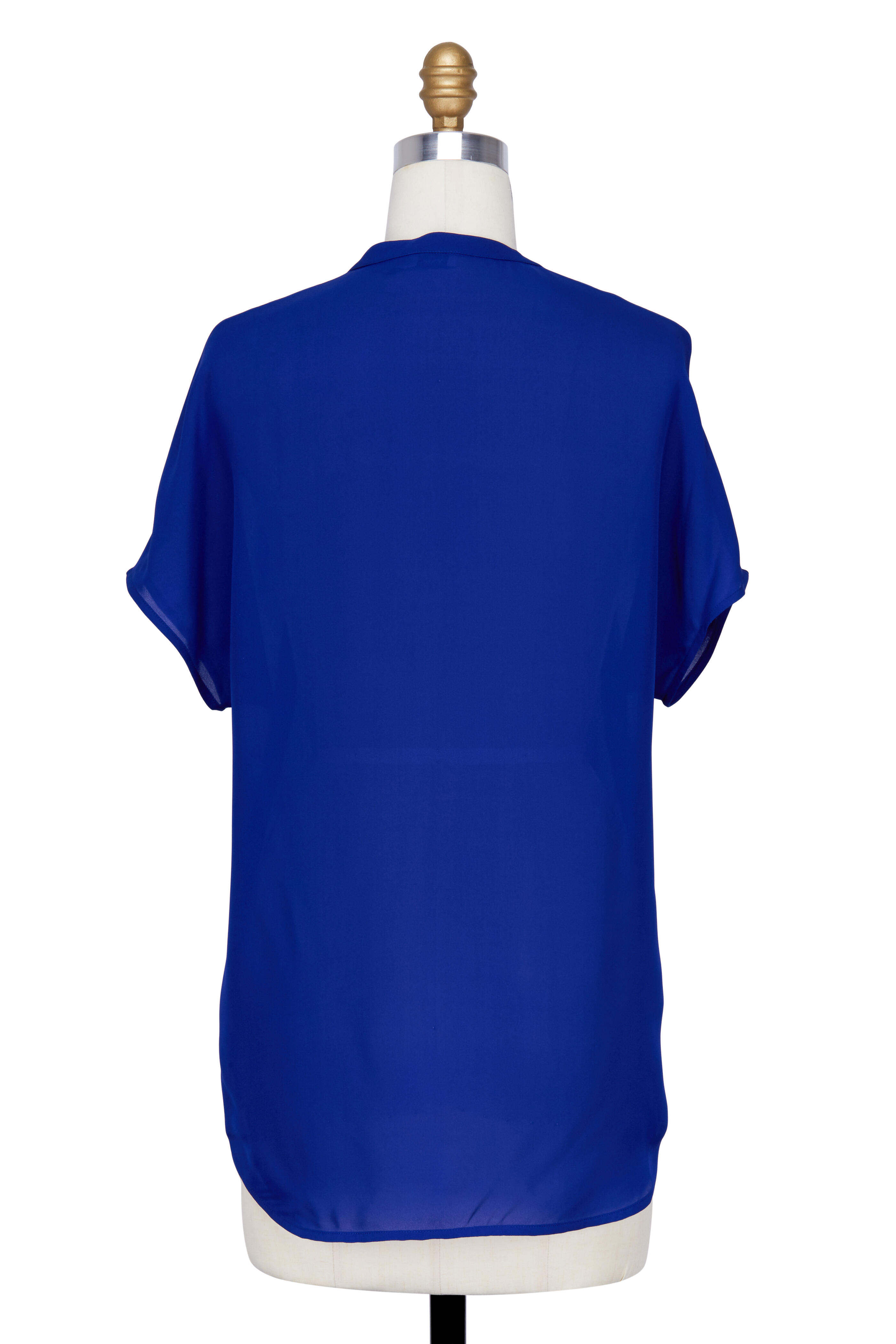 Capri Blue Silk Cap Sleeve Popover Blouse