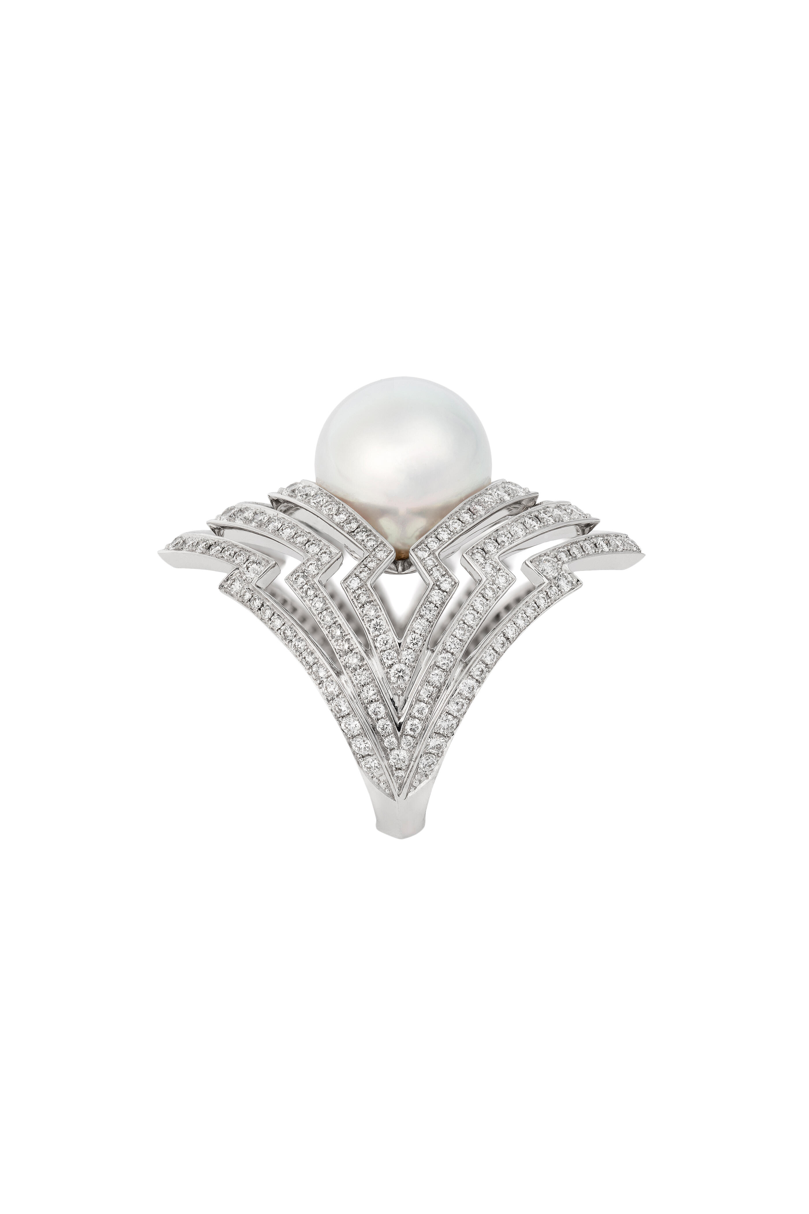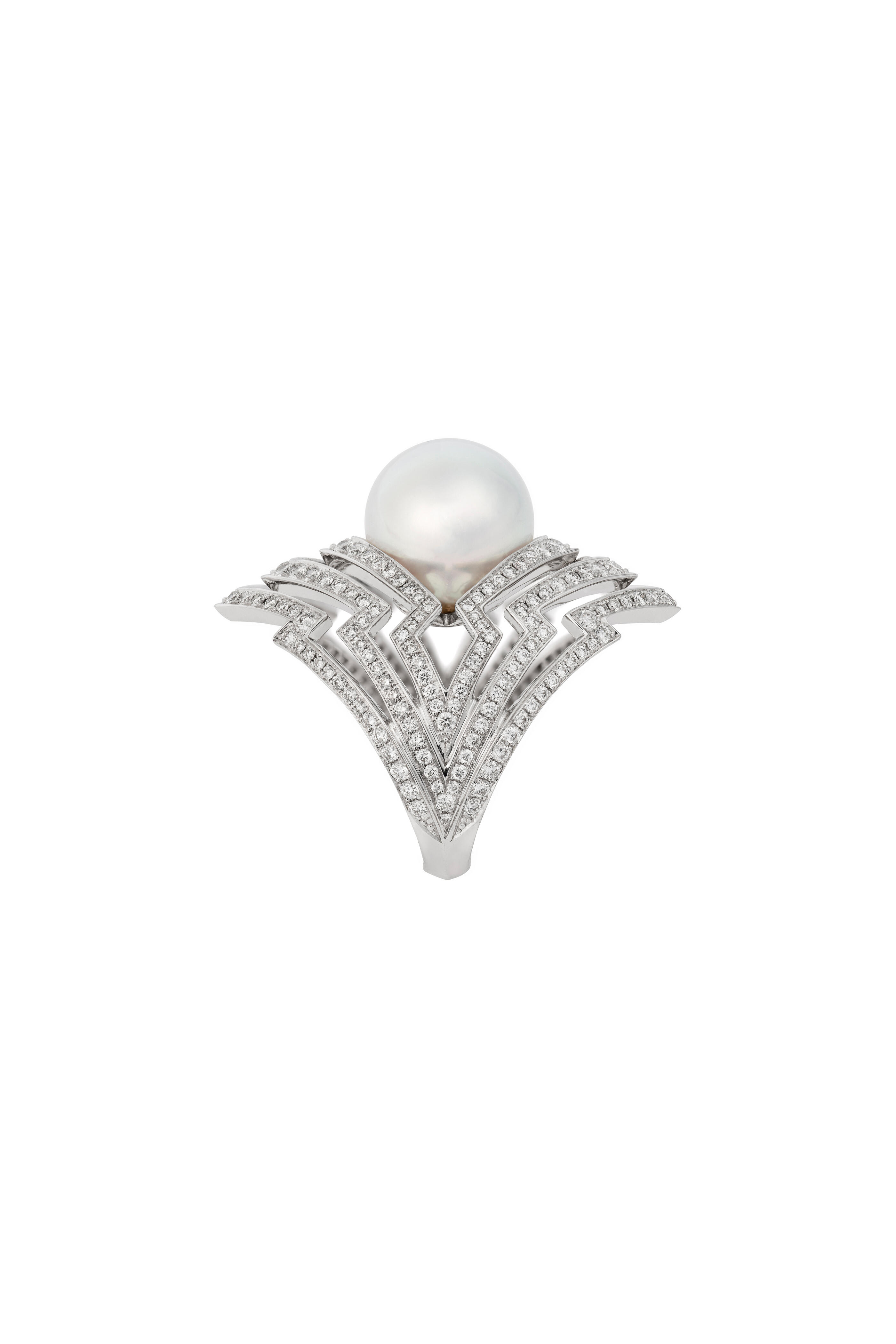 18K white gold. White South Sea pearl, 11.90 total carat weight. Pavé diamonds, 1.68 total carat weight.