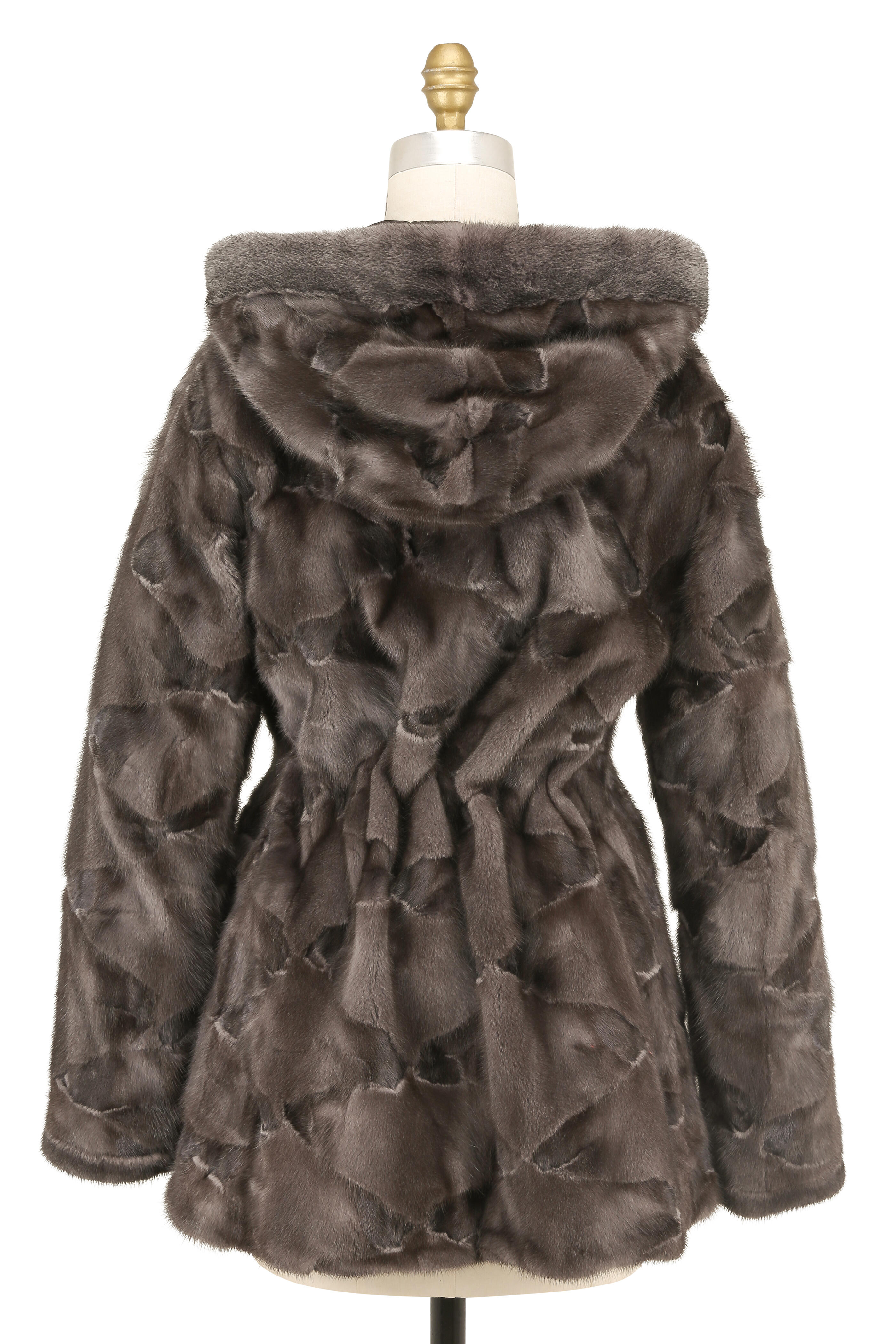 Gray Mink Reversible Hooded Coat