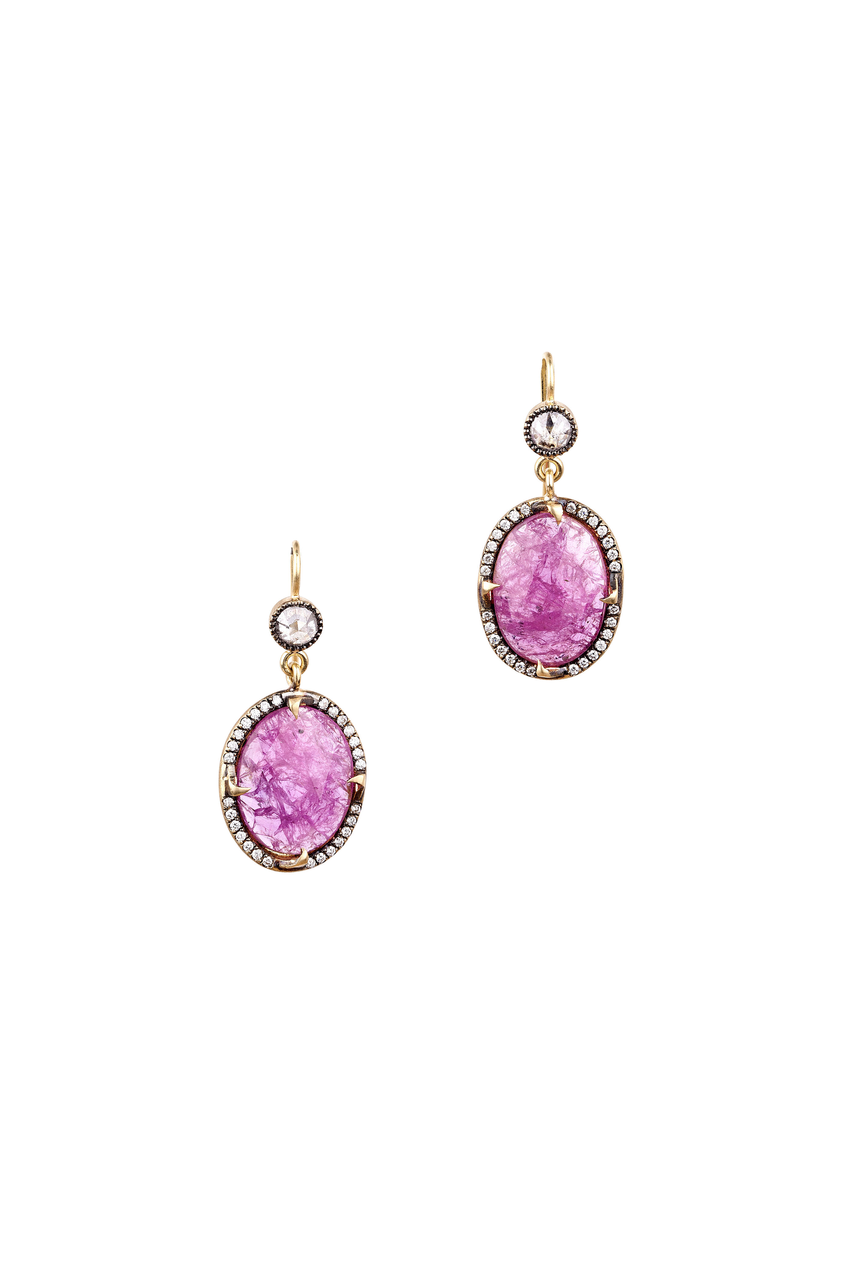 18K yellow gold. Rubies, 12.24 total carat weight. Gray diamonds, 0.46 total carat weight. Round brilliant-cut diamonds, 0.30 total carat weight.
