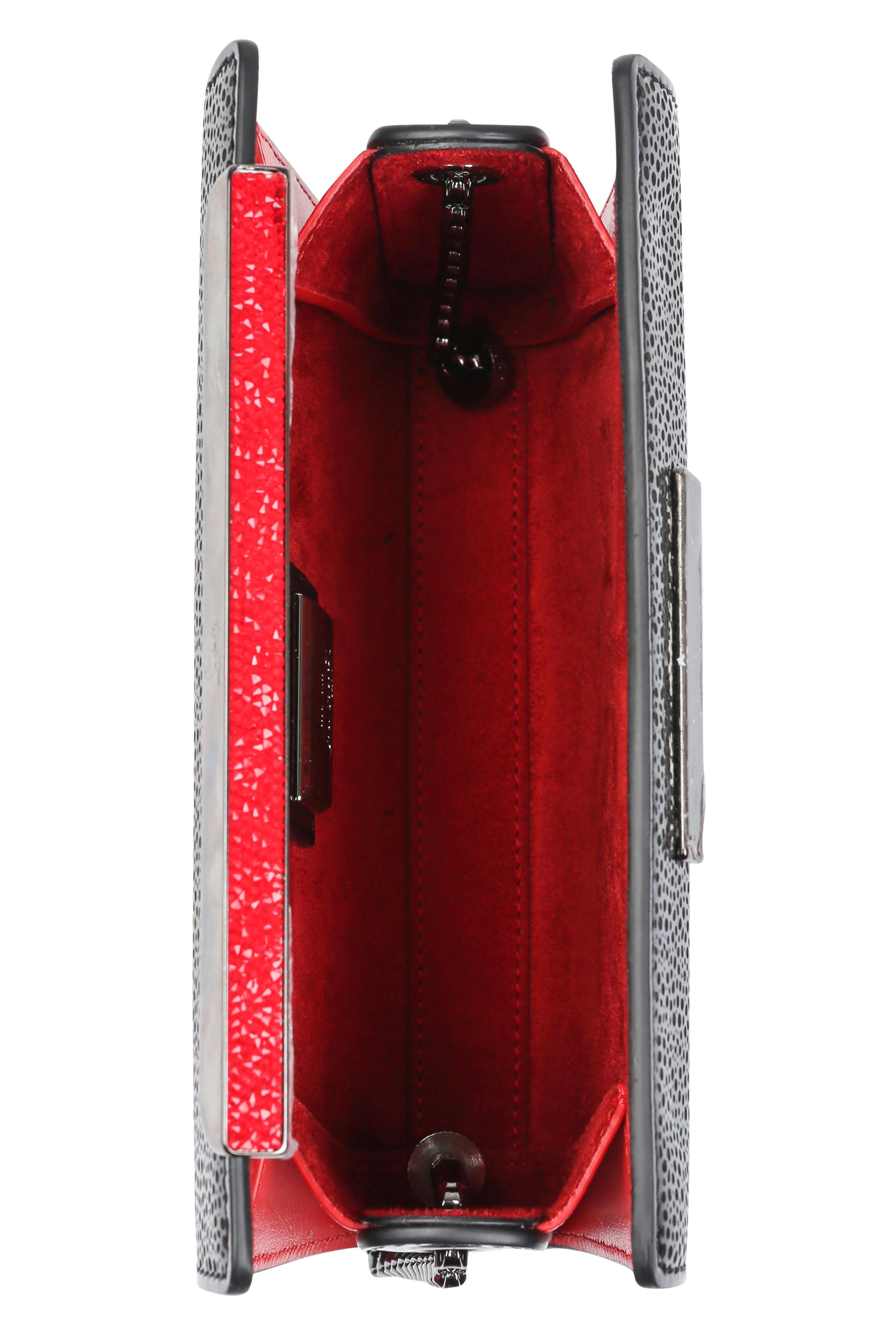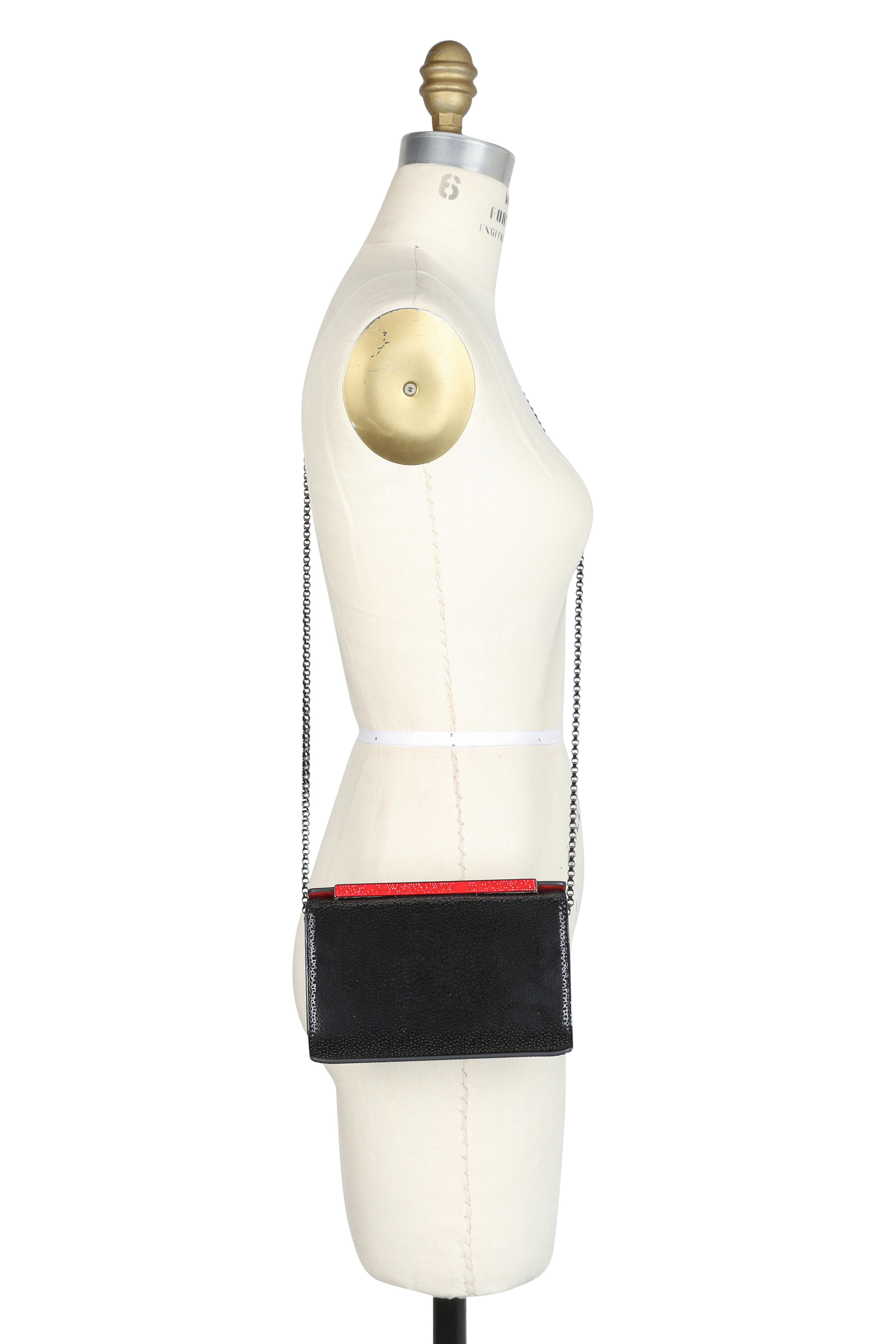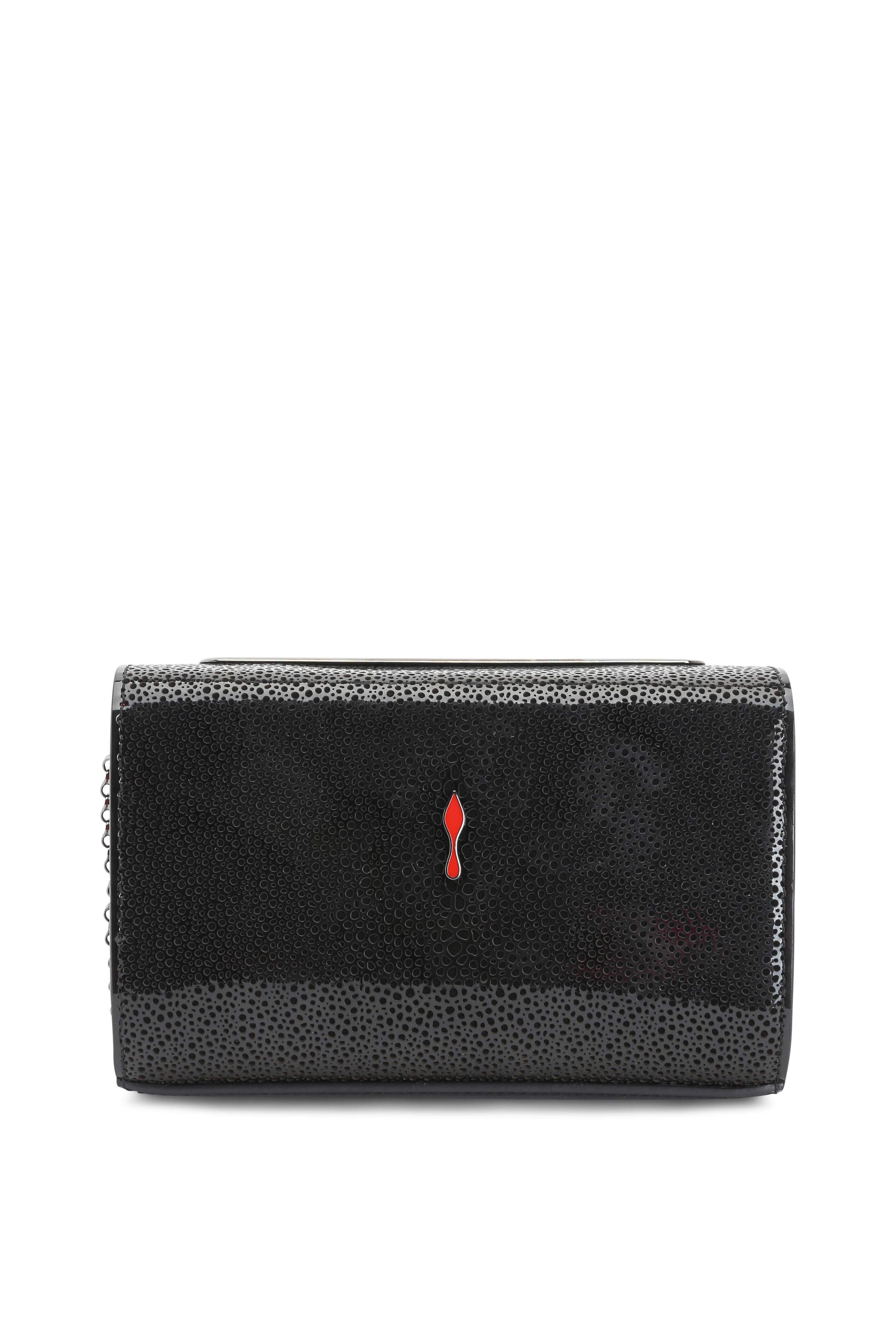 Patent calfskin. Optional gunmetal chain strap. Magnetic snap flap closure. Signature red suede lining. Made in Italy. Width: 7 ½". Height: 5". Depth: 2". Strap drop: 21".