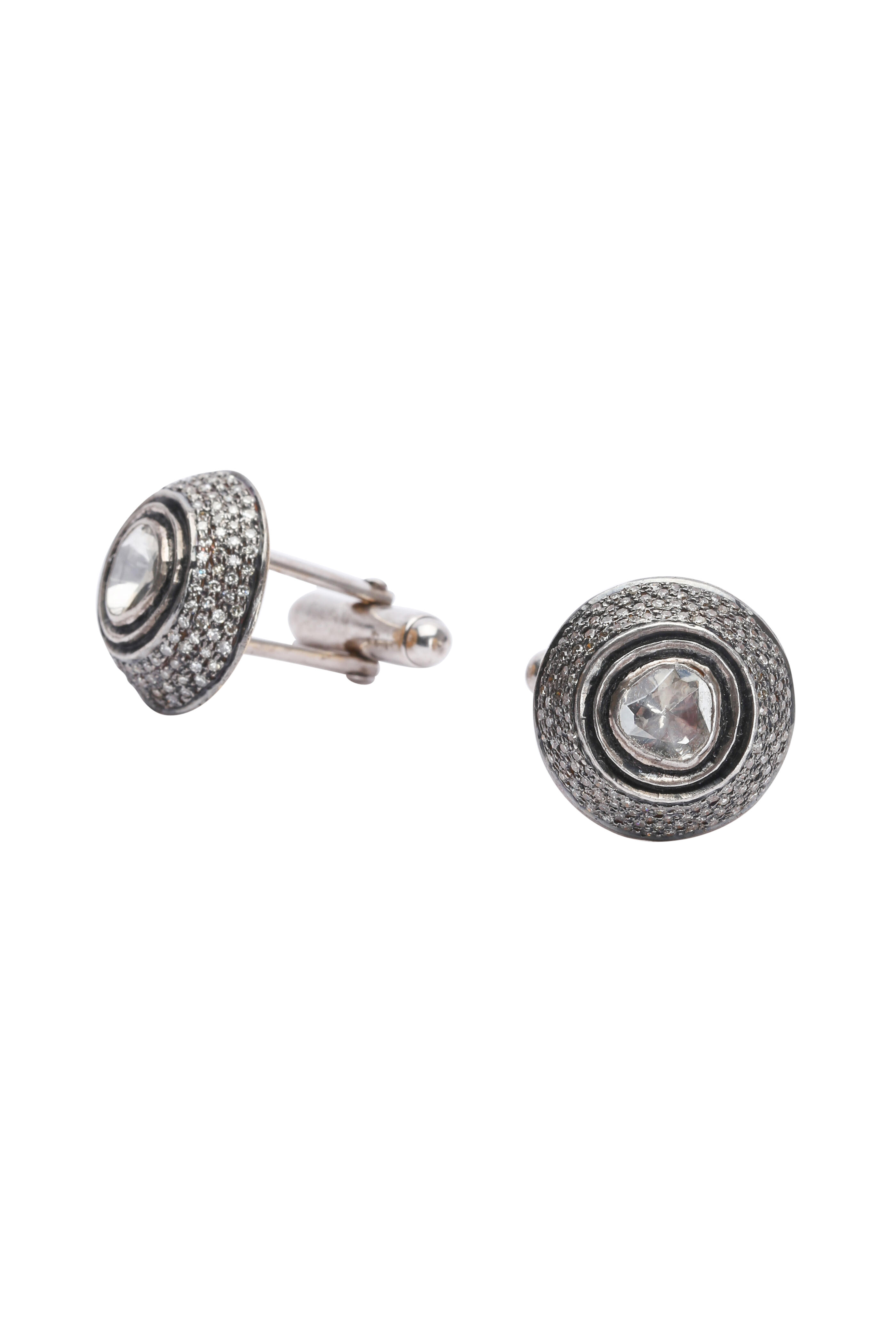 14K White Gold & Silver Diamond Cuff Links