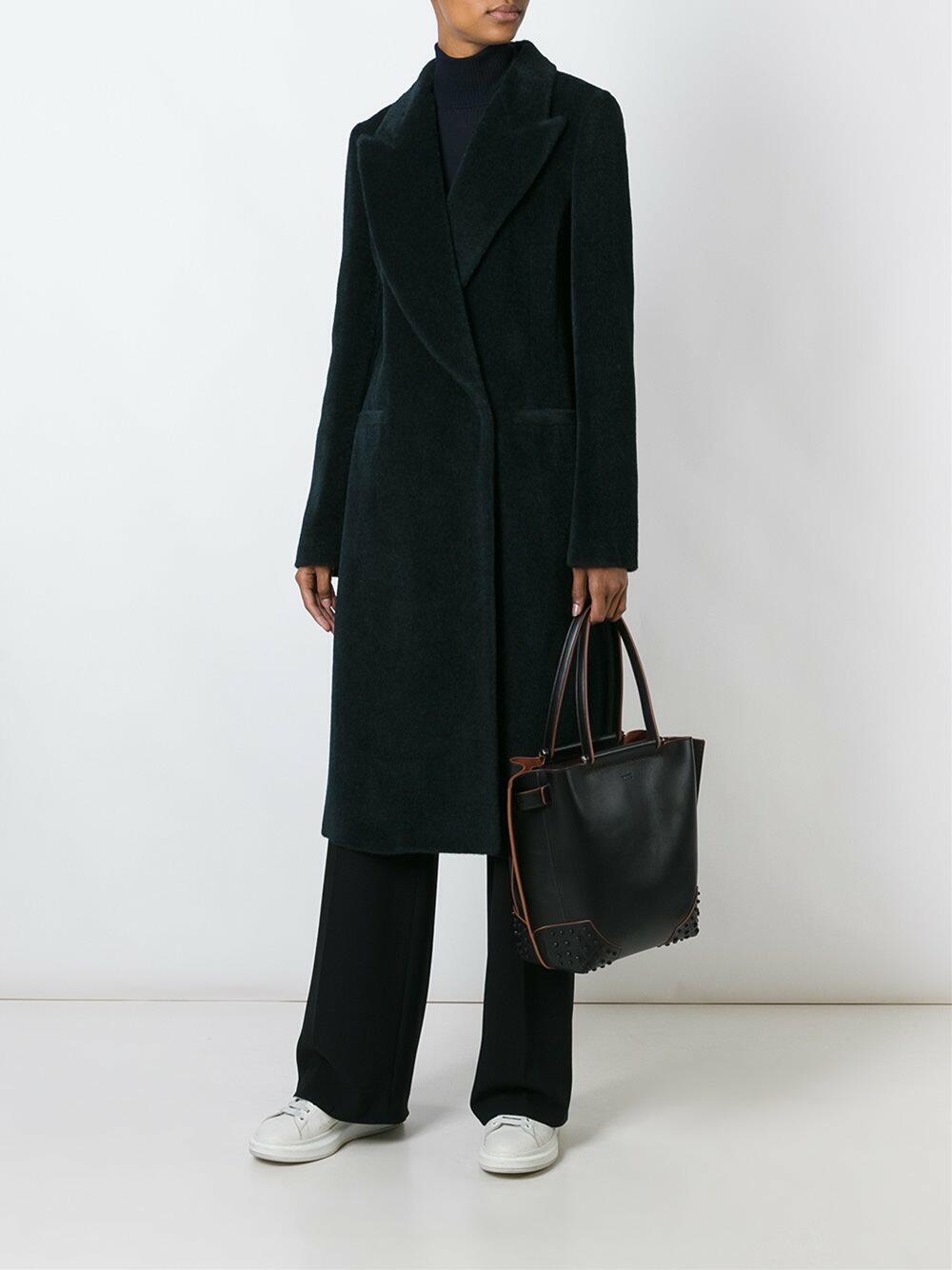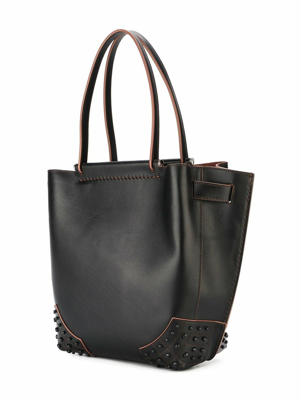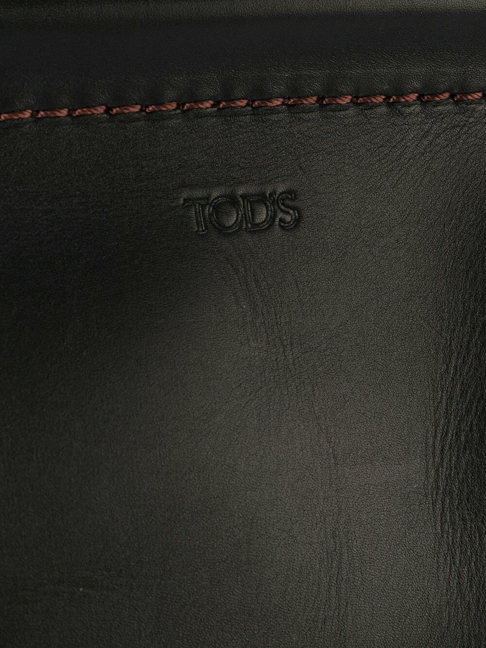 Smooth calfskin leather. Dual flat straps. Adjustable belted topline. Center snap closure. Contrast top-stitching. One interior zipped pouch pocket. Signature gommini detail at sides. Lined in suede. Made in Italy. Width: 16". Height: 12". Depth: 5". Strap drop: 8".