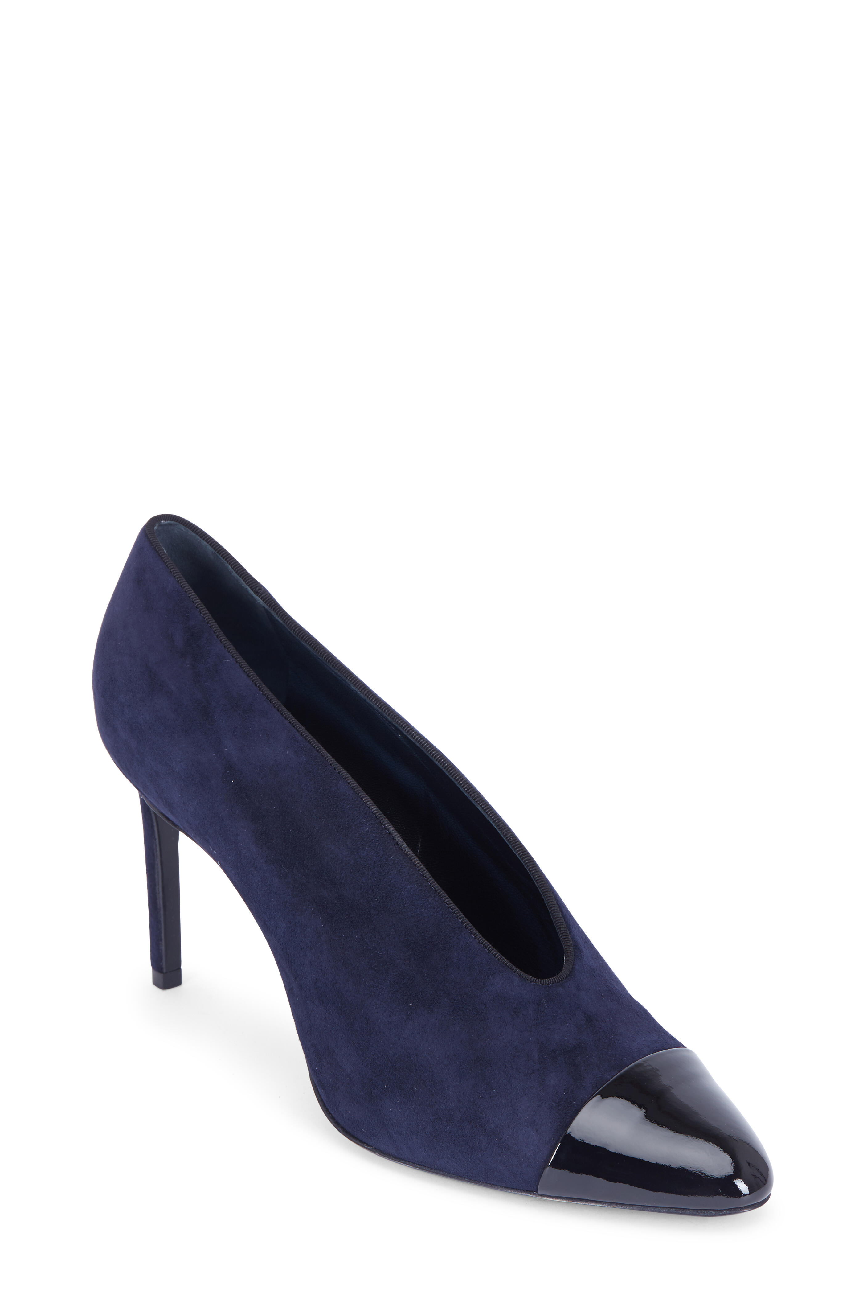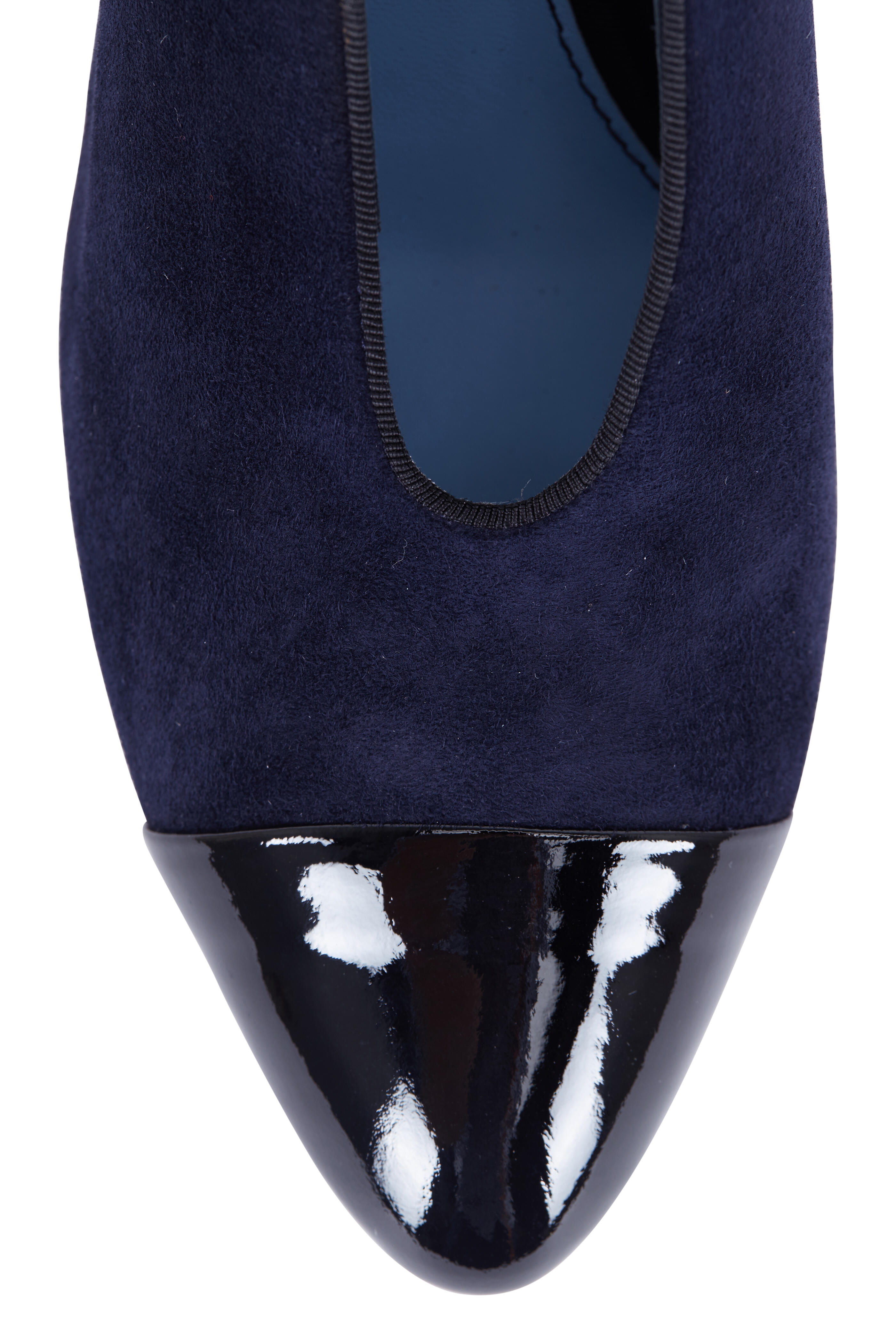 Navy Blue Suede Patent Leather Cap-Toe Pump, 80mm
