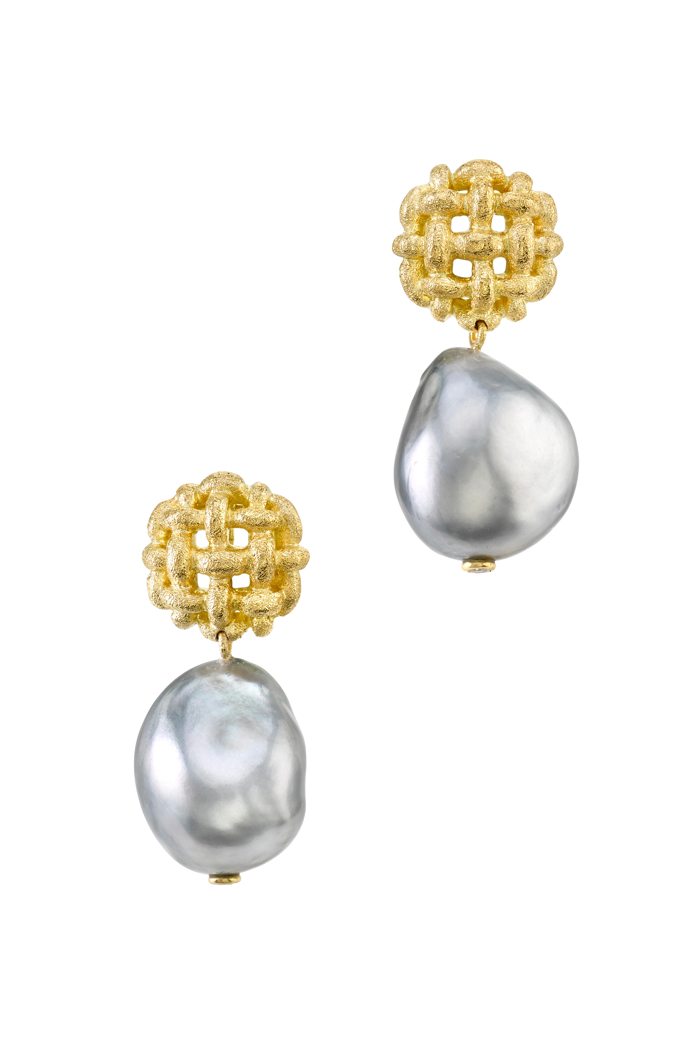18K Yellow Gold Tahitian Pearl Drop Earrings