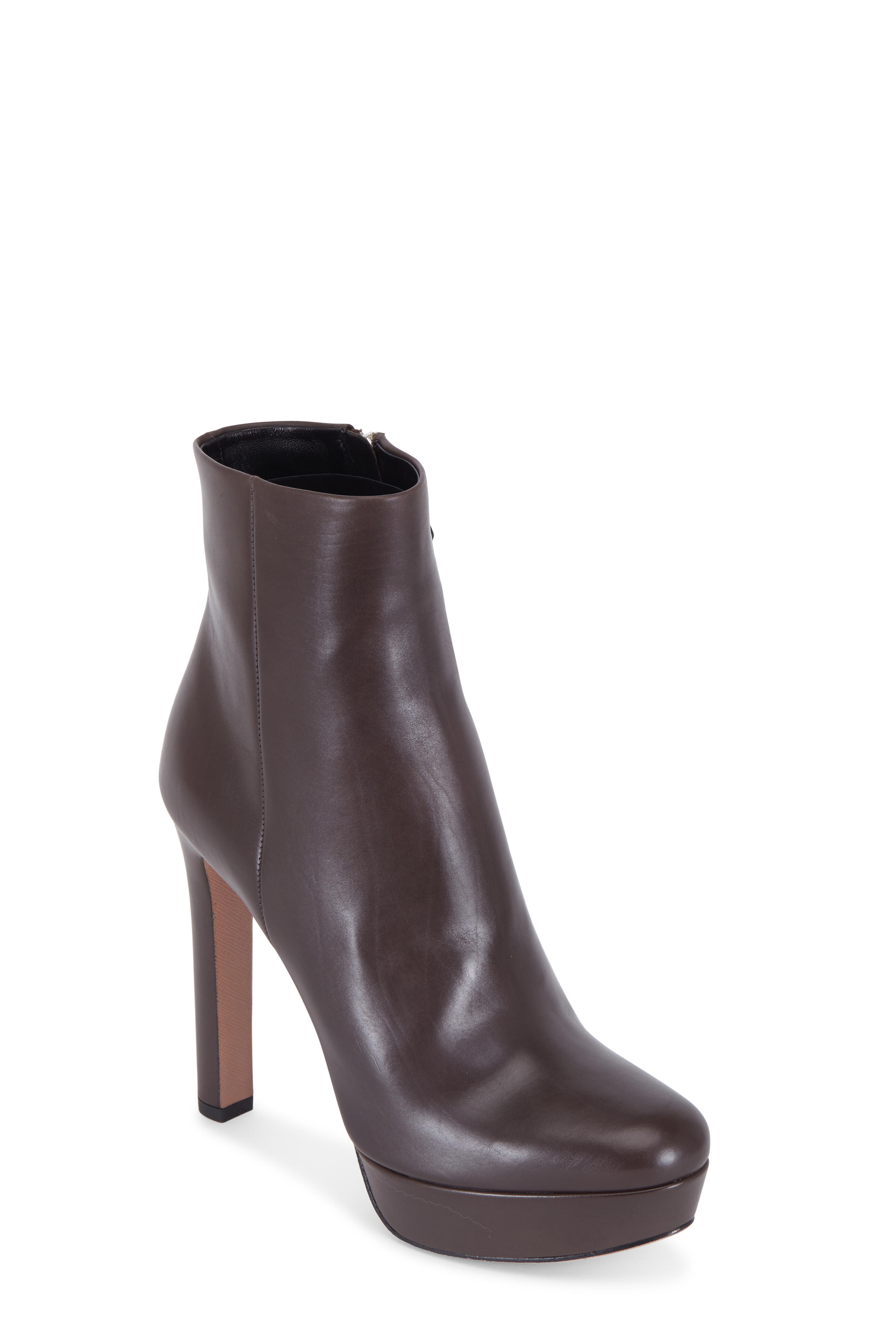 Brown Leather Skinny Heel Platform Bootie, 125mm