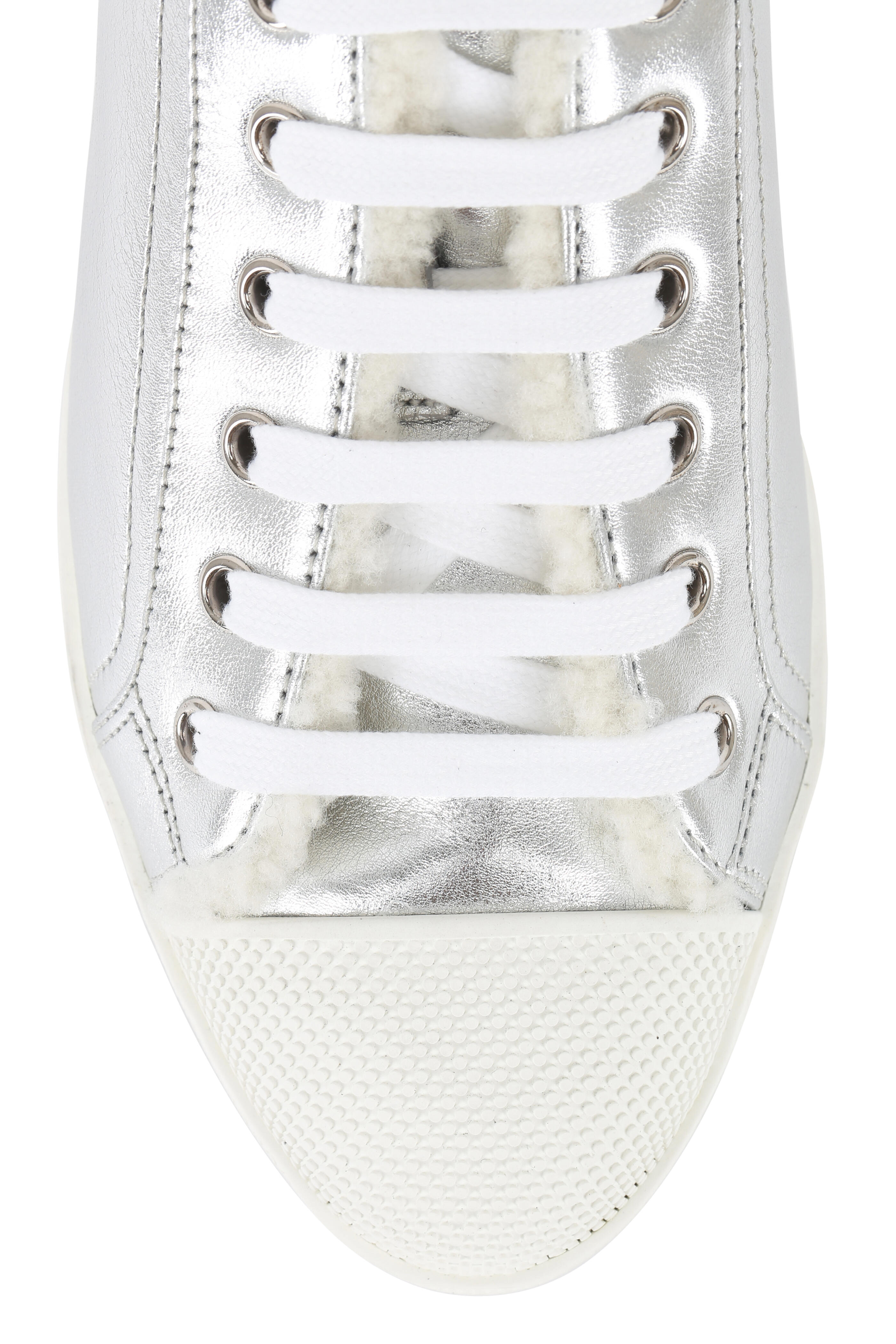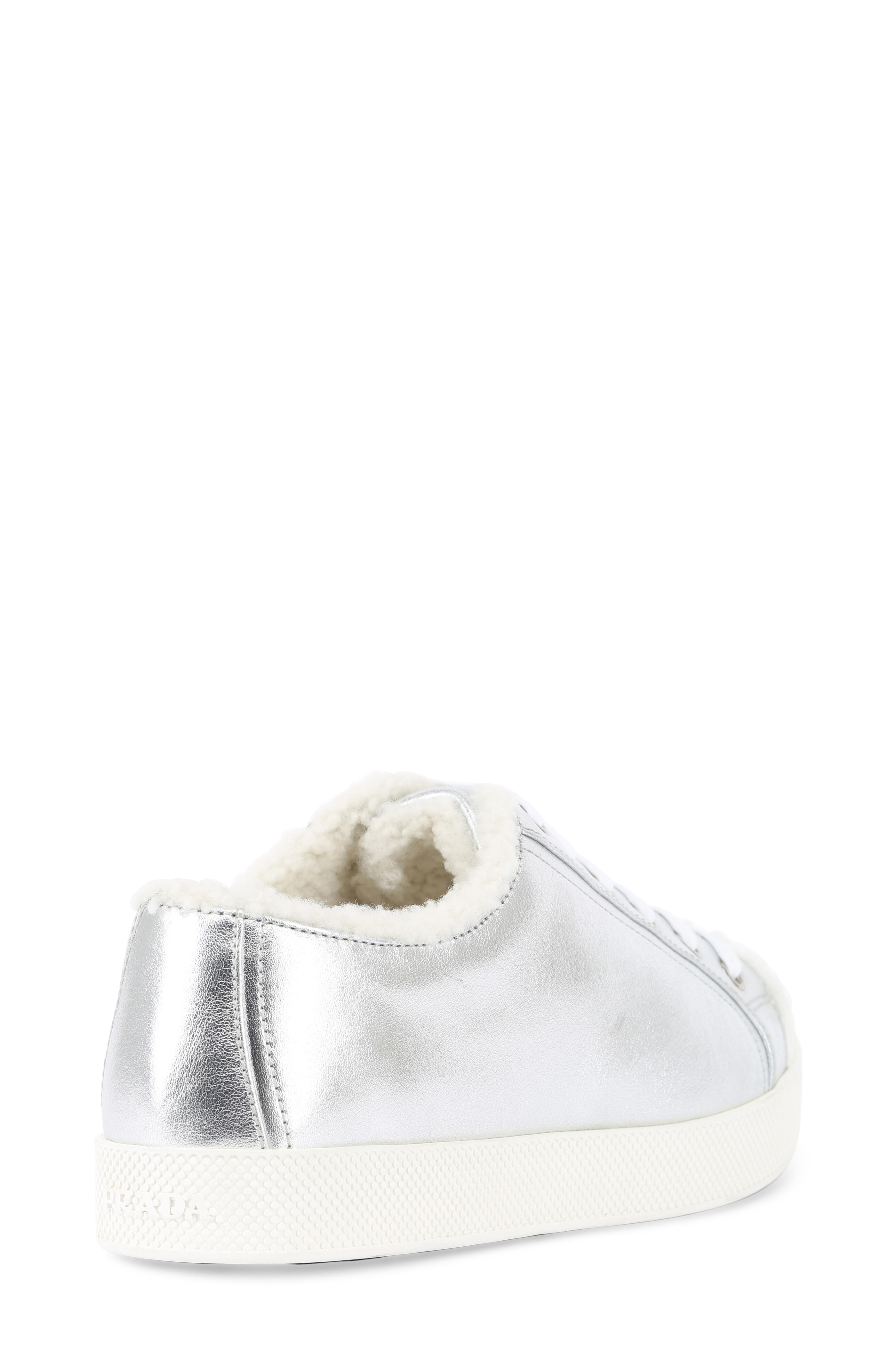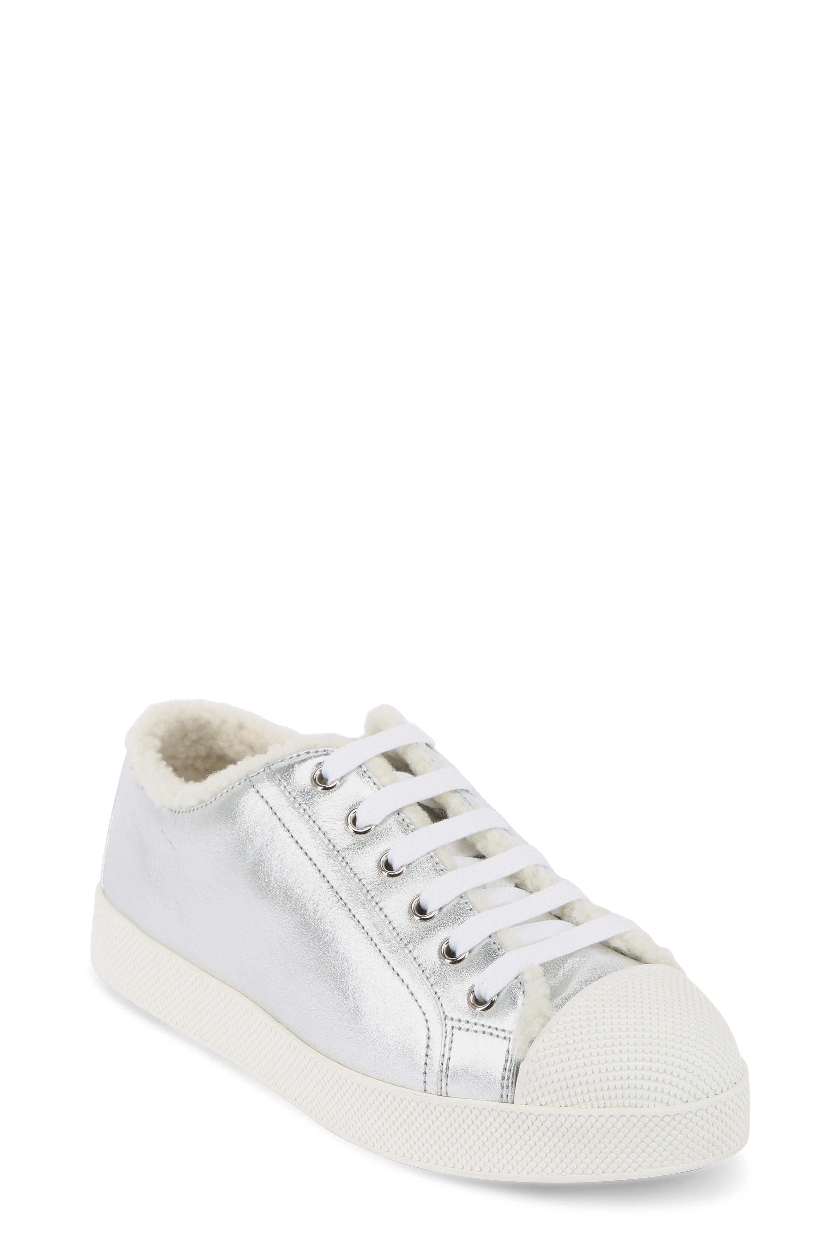 Silver Leather & Shearling Low-Top Sneaker