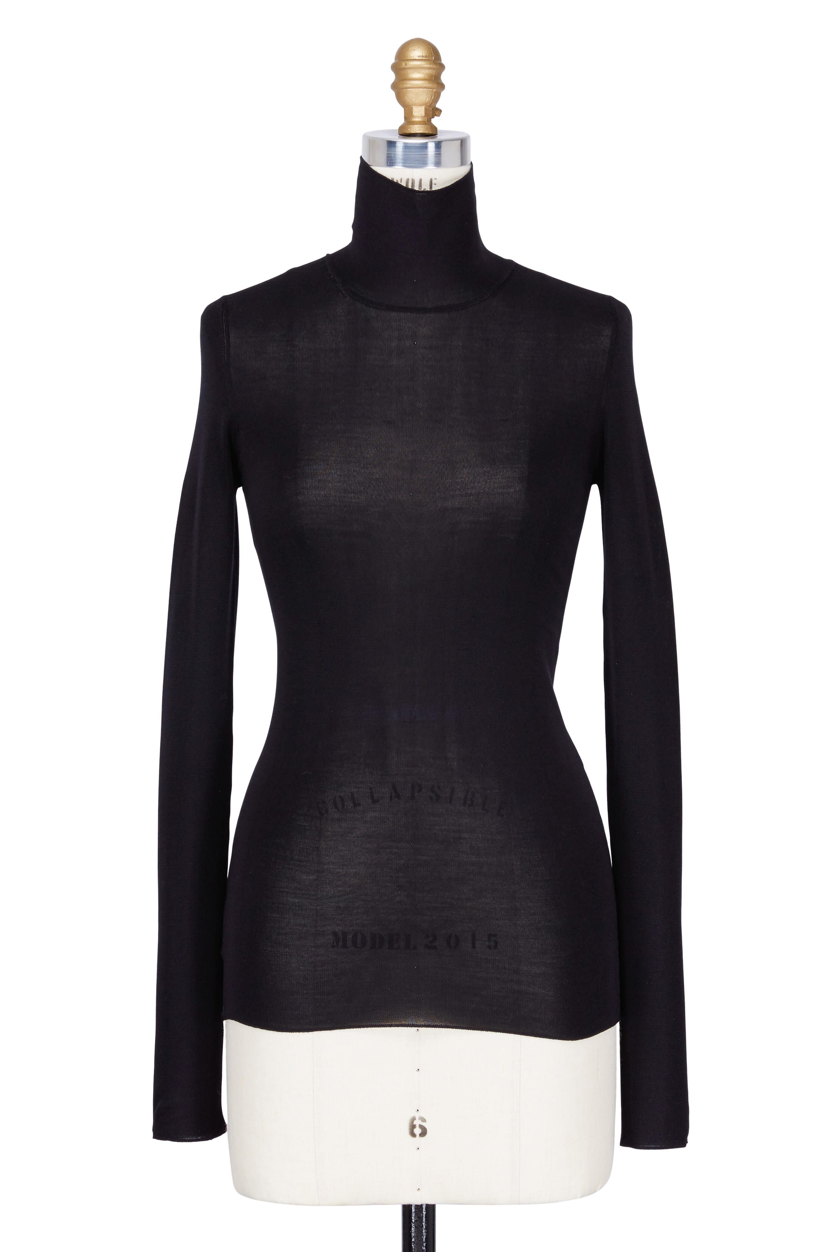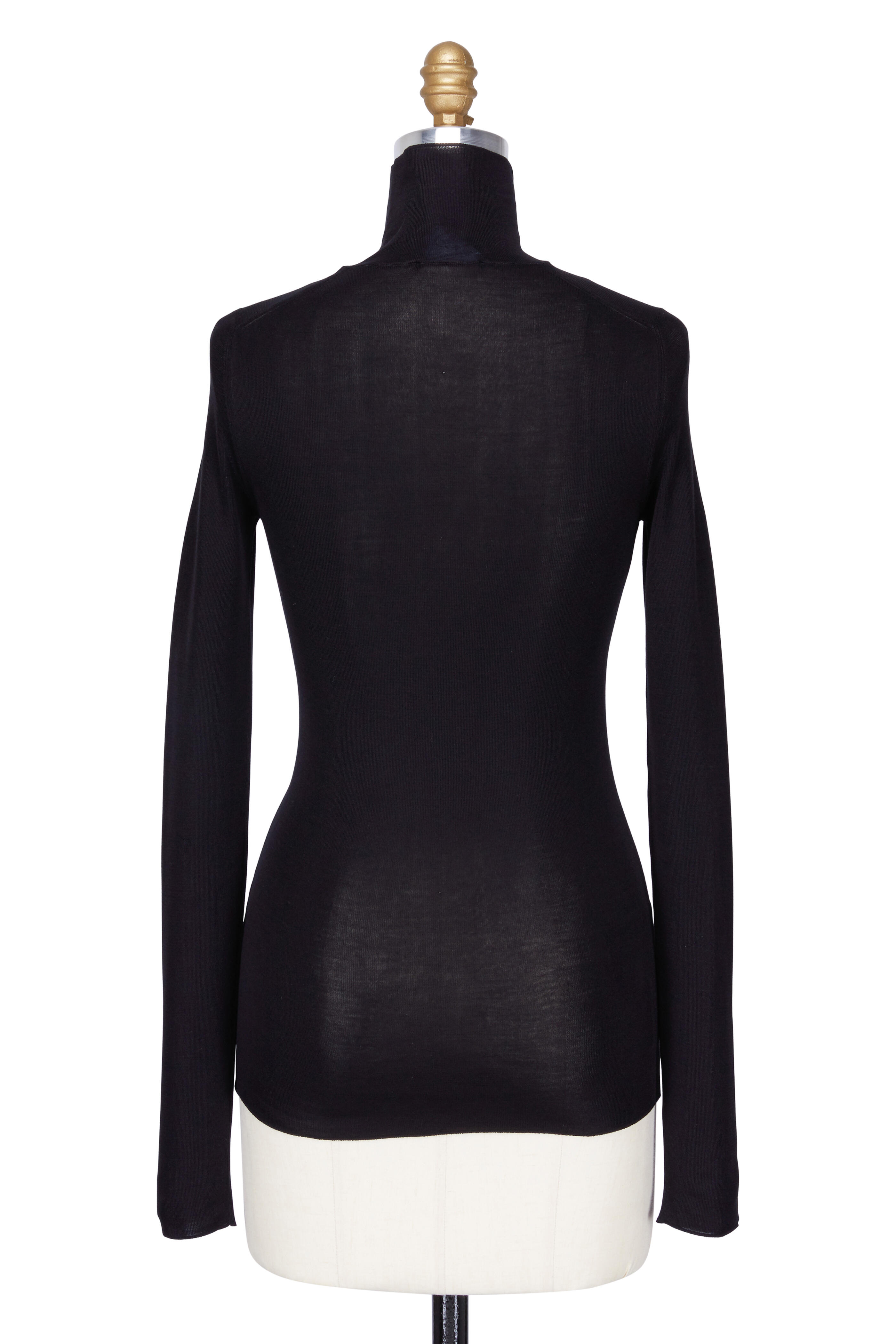 Black Fine Gauge Silk Turtleneck Top