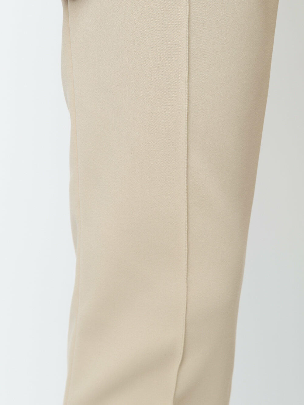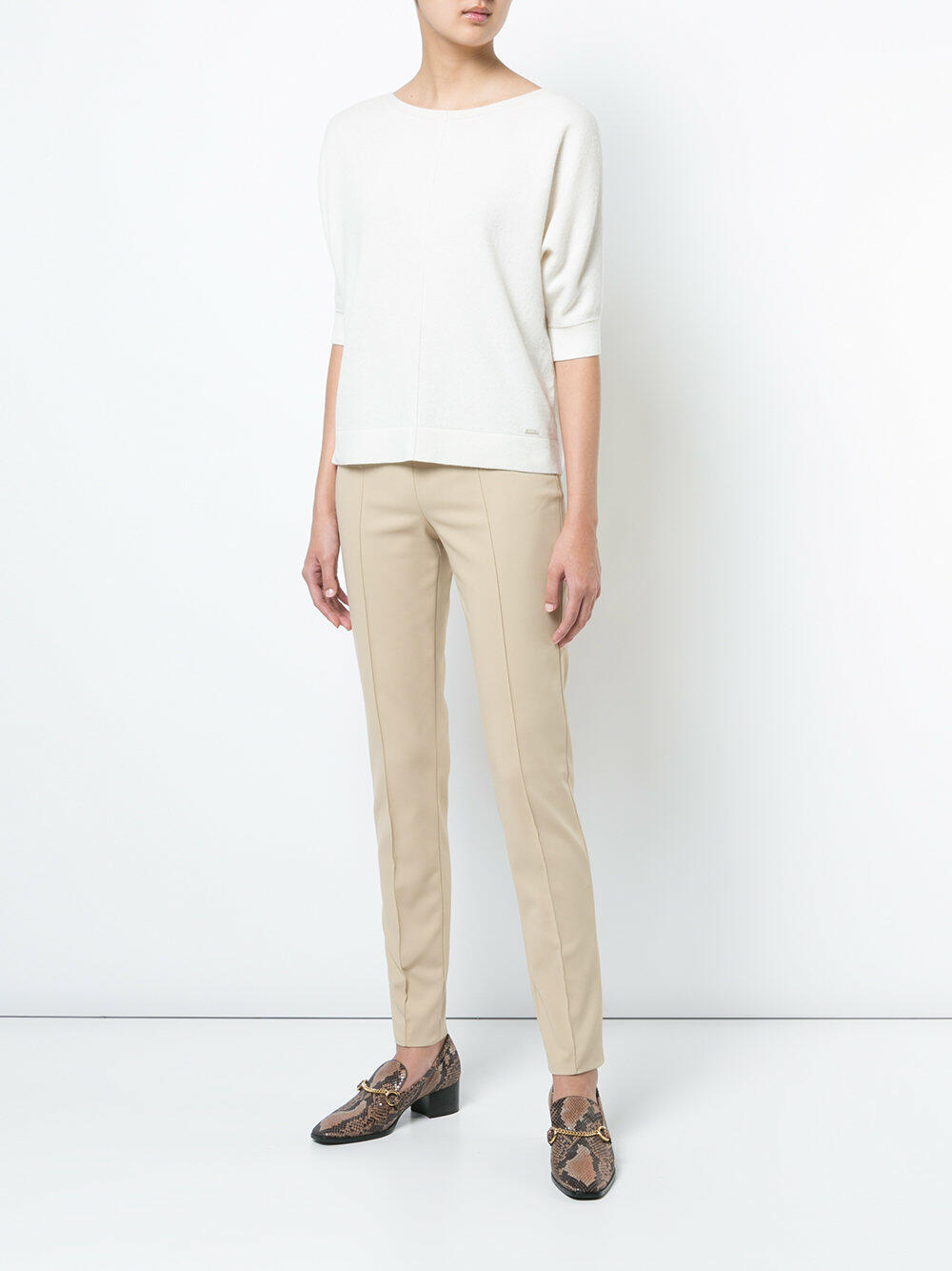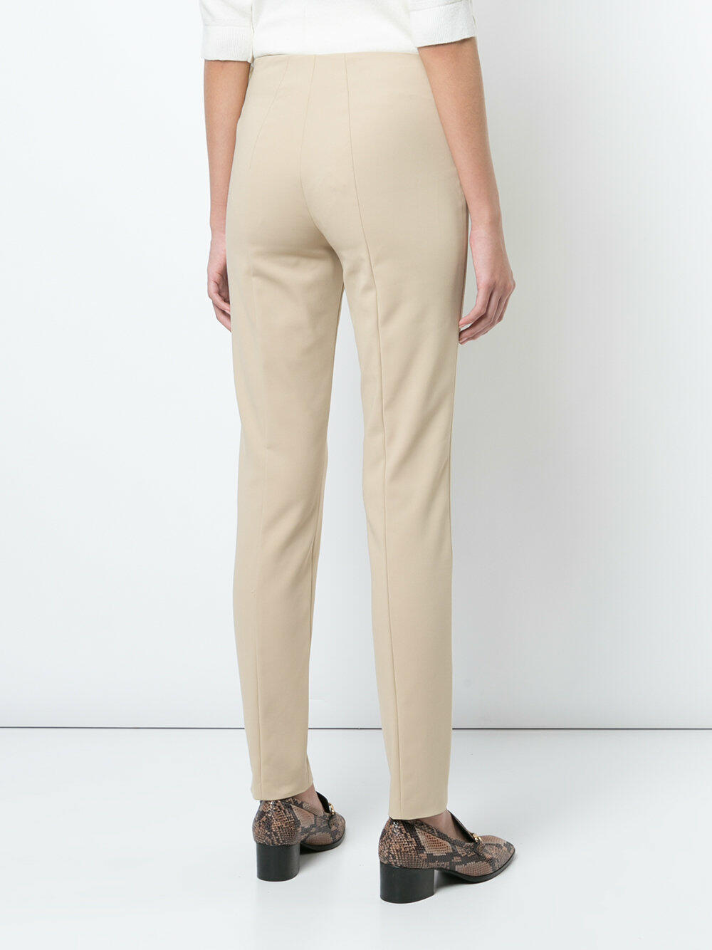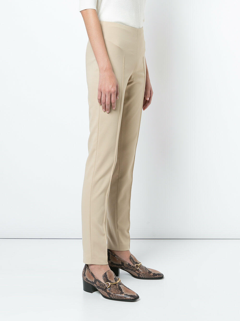 Side zip closure. Flat front. Raised center seam detail. Imported of Italian fabric. Rise: 10". Inseam: 30". 51% cotton, 42% nylon, 7% elastane. Dry clean.