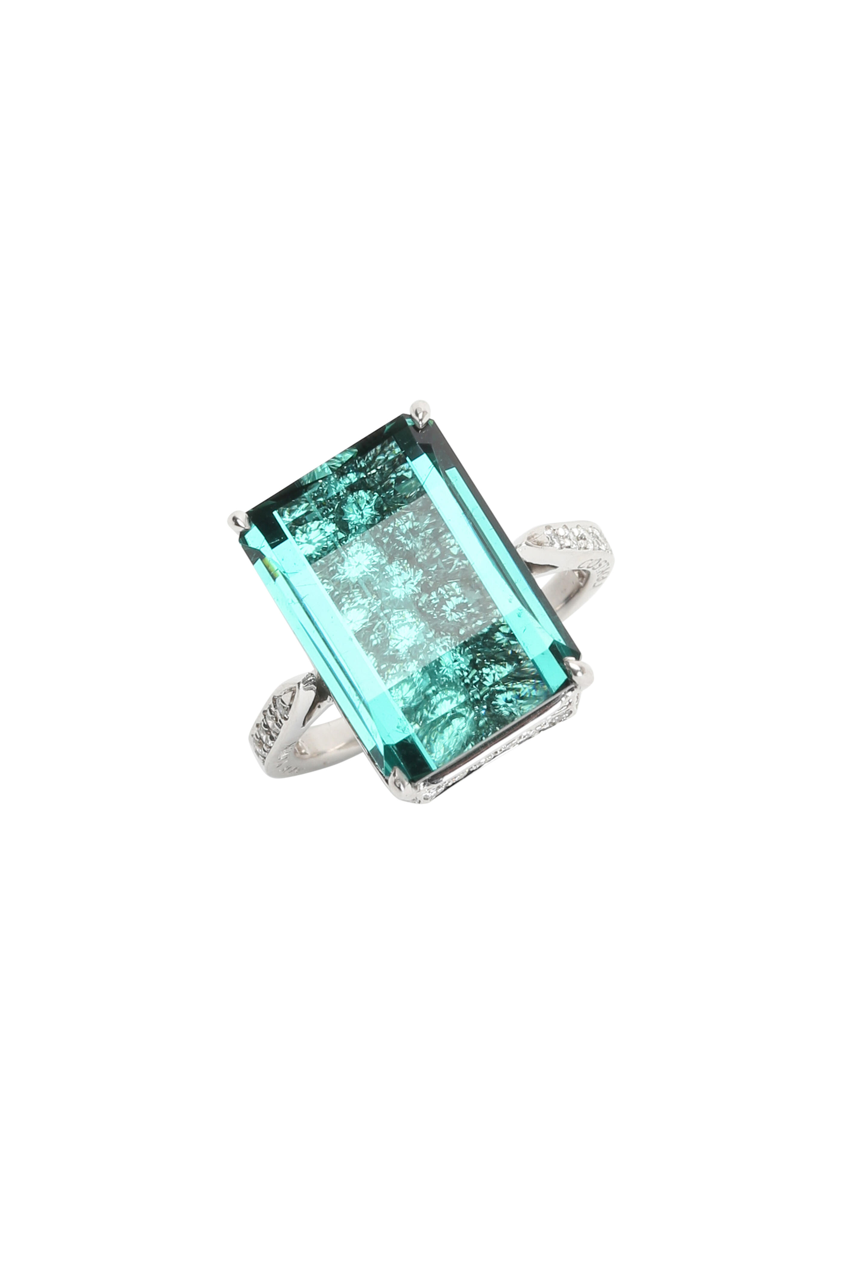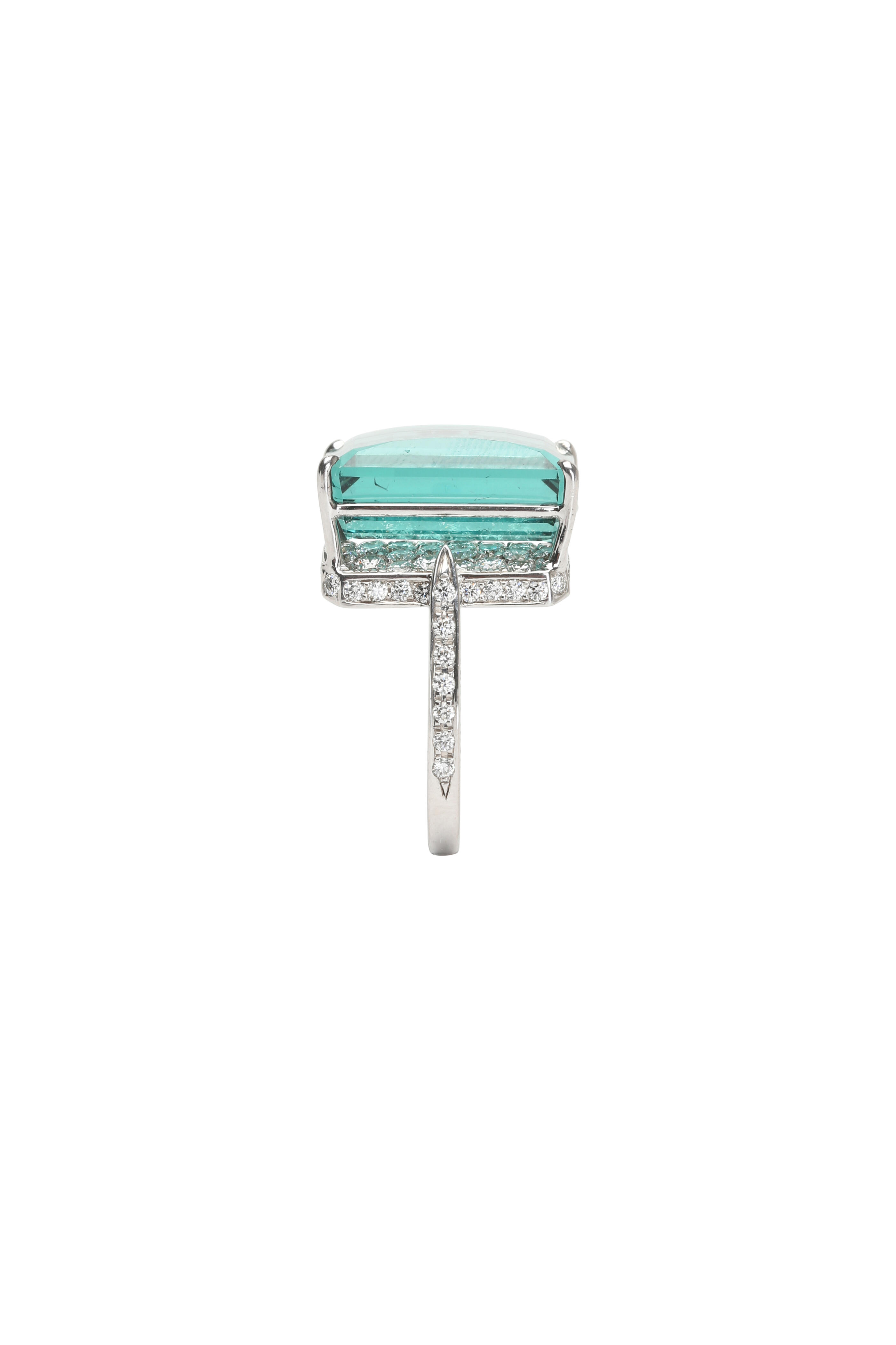 18K white gold. Indicolite, 12.01 total carat weight. Pavé set diamonds, 1.50 total carat weight.
