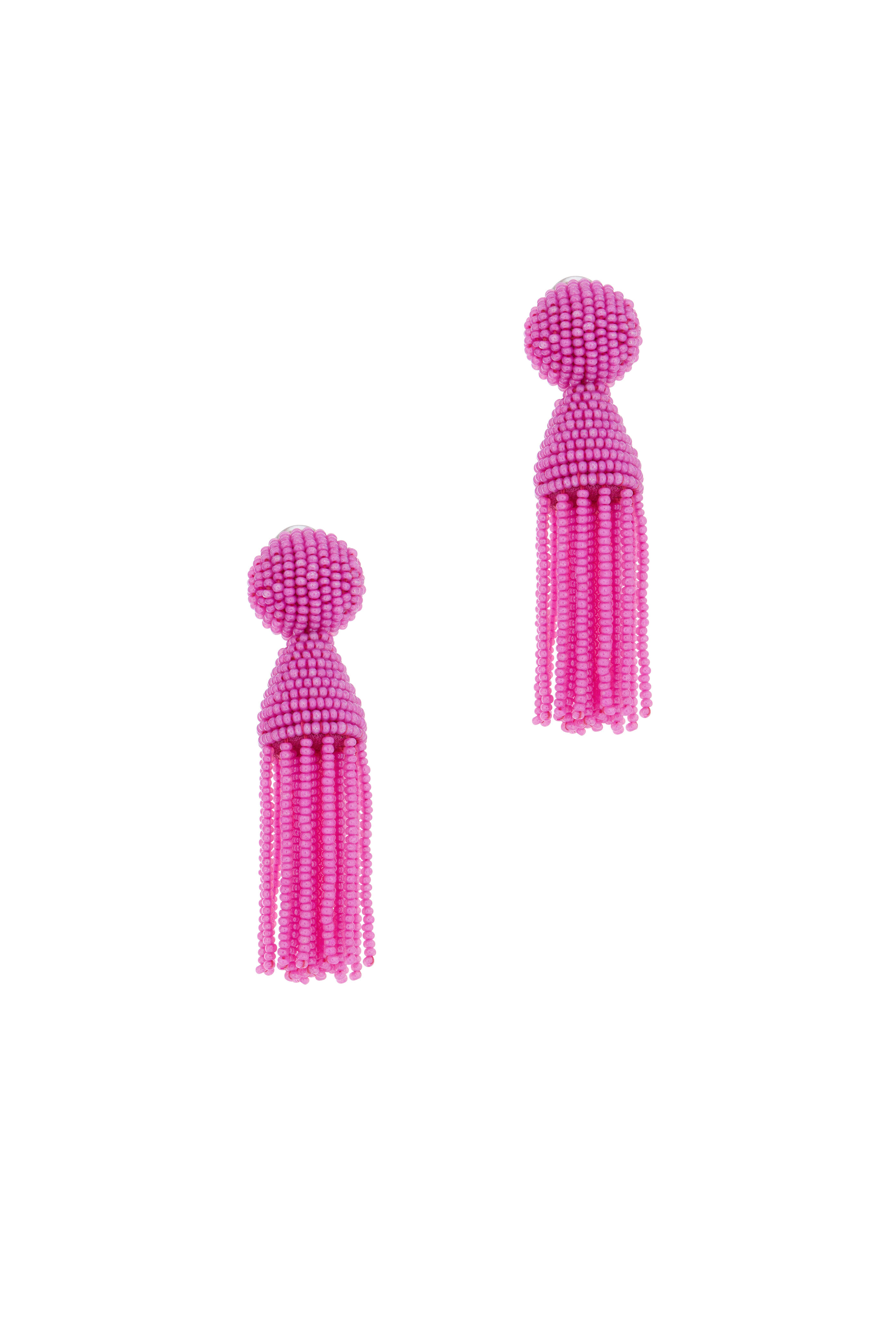 Fuchsia Beaded Short Tassel Clip-On Earrings
