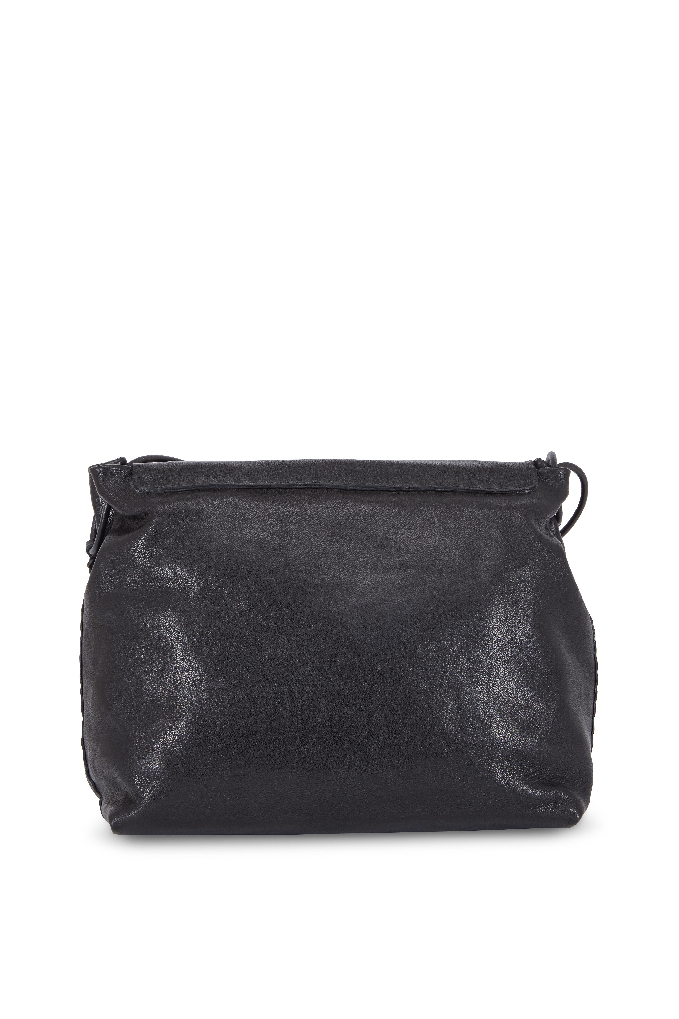 Salvia Black Leather & Calf Hair Trim Shoulder Bag