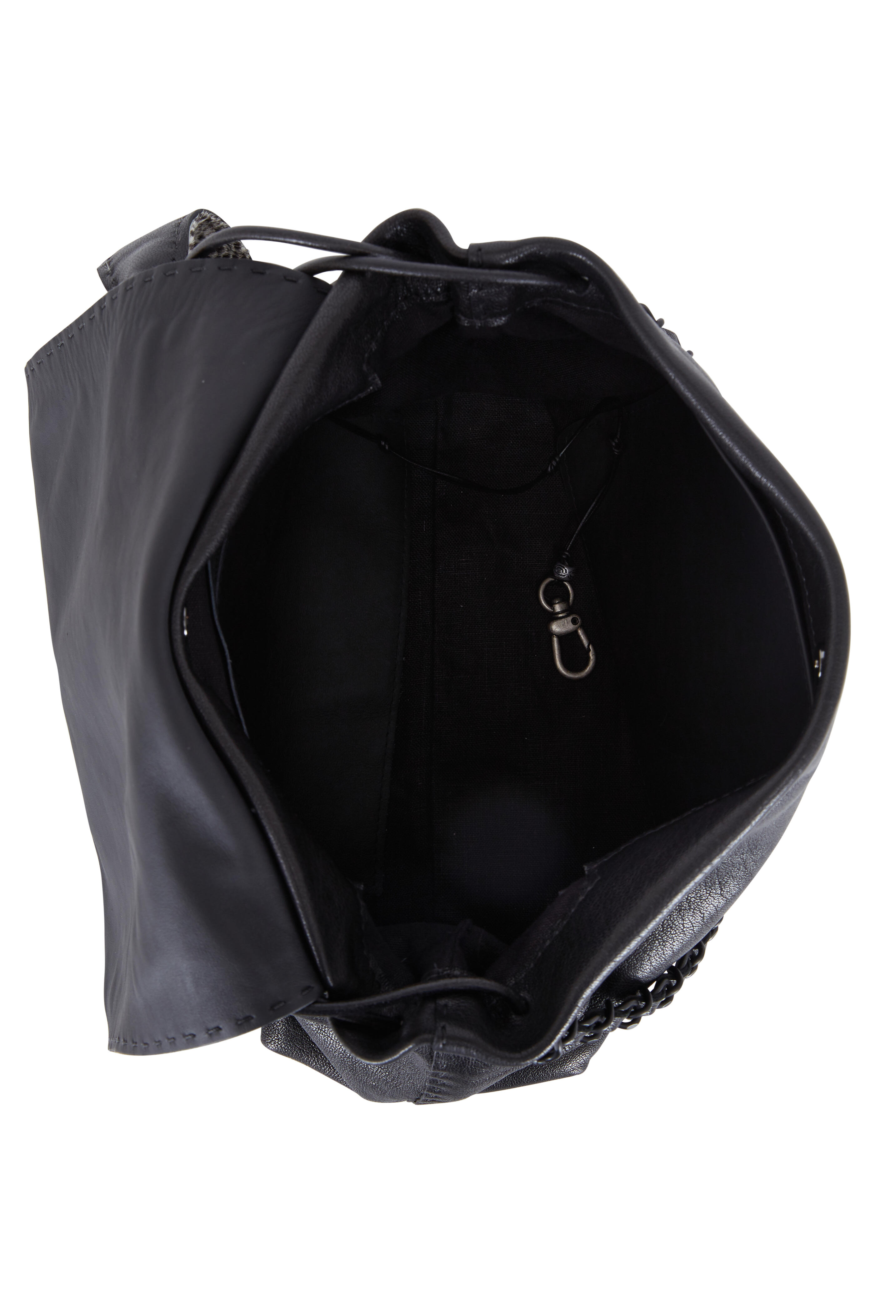 Calfskin leather with calf hair trim. Chain and leather shoulder strap; rolled leather crossbody strap with calf hair shoulder inset. Flap front with magnetic snap closure. One interior zip and one open pocket. Fully lined. Made in Italy. Width: 12". Height: 10 ½". Depth: 5 ½". Shoulder strap drop: 9". Crossbody strap drop: 24".
