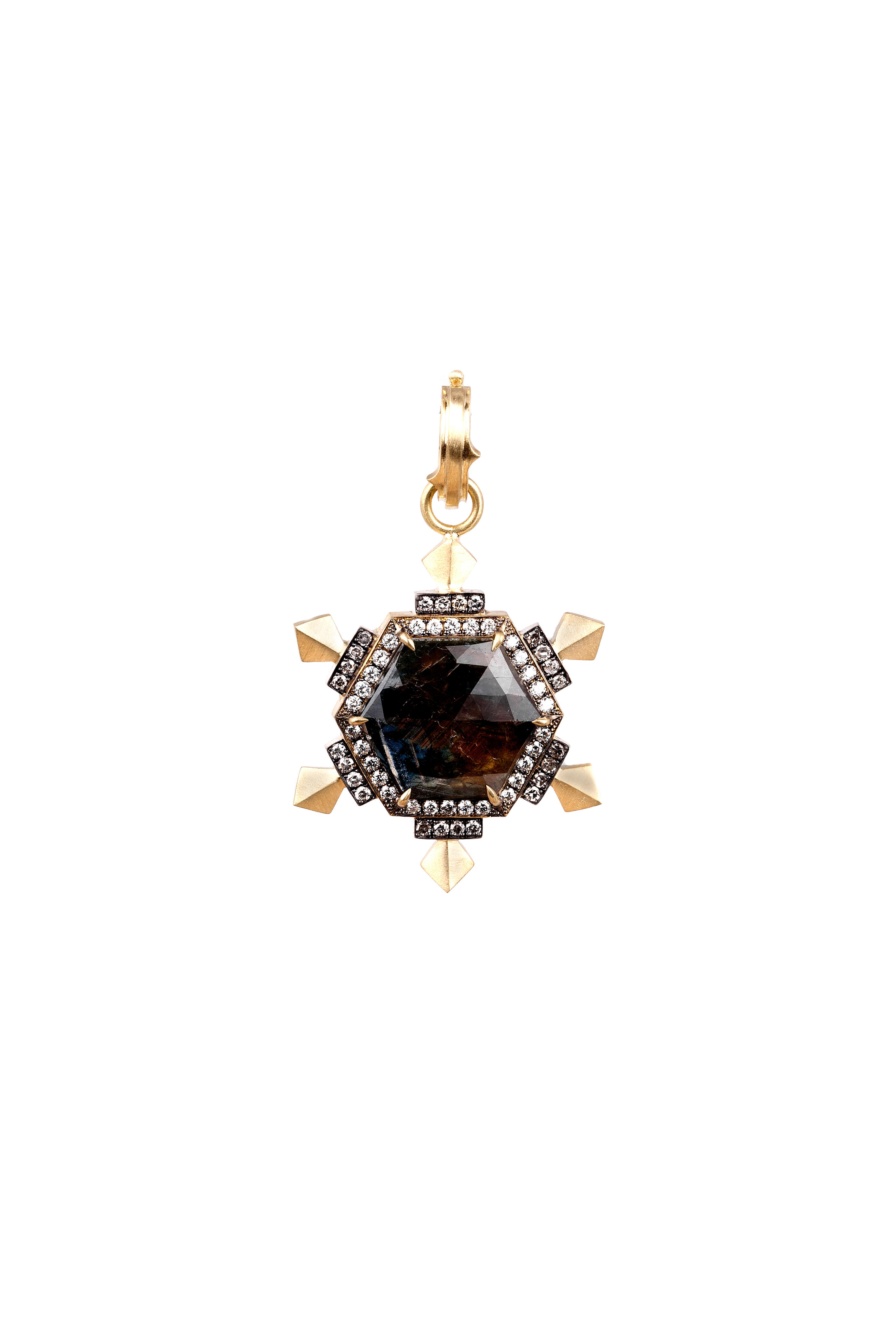 18K Yellow Gold Kenyan Sapphire & Diamond Pendant