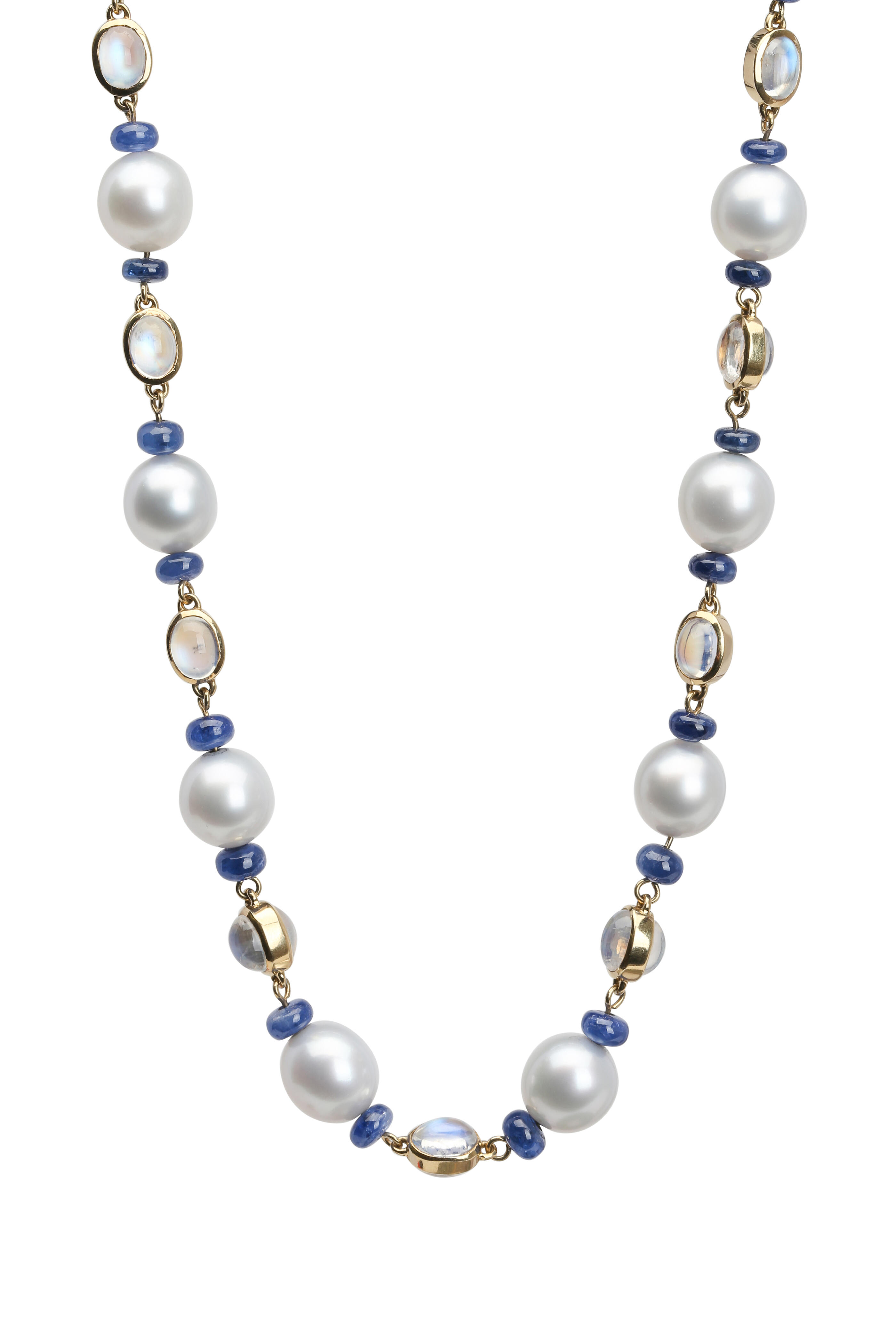 18K Gold Pearl, Sapphire & Moonstone Necklace