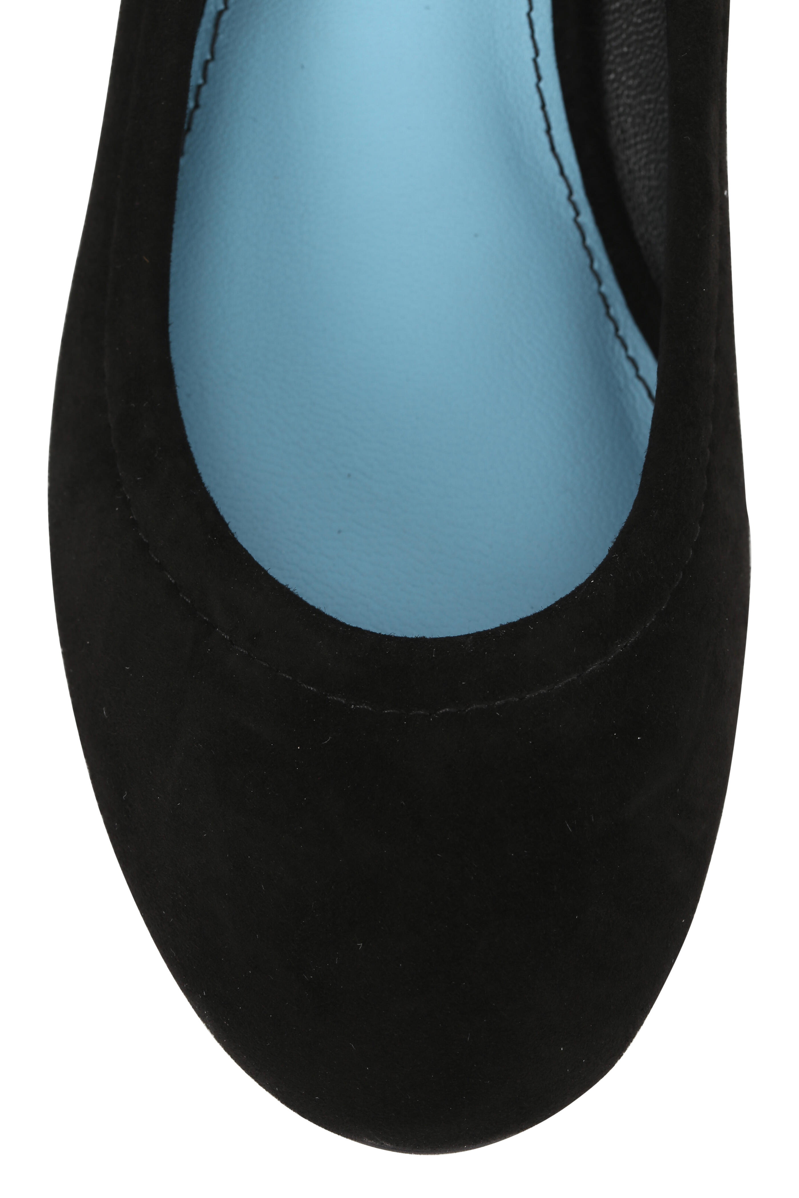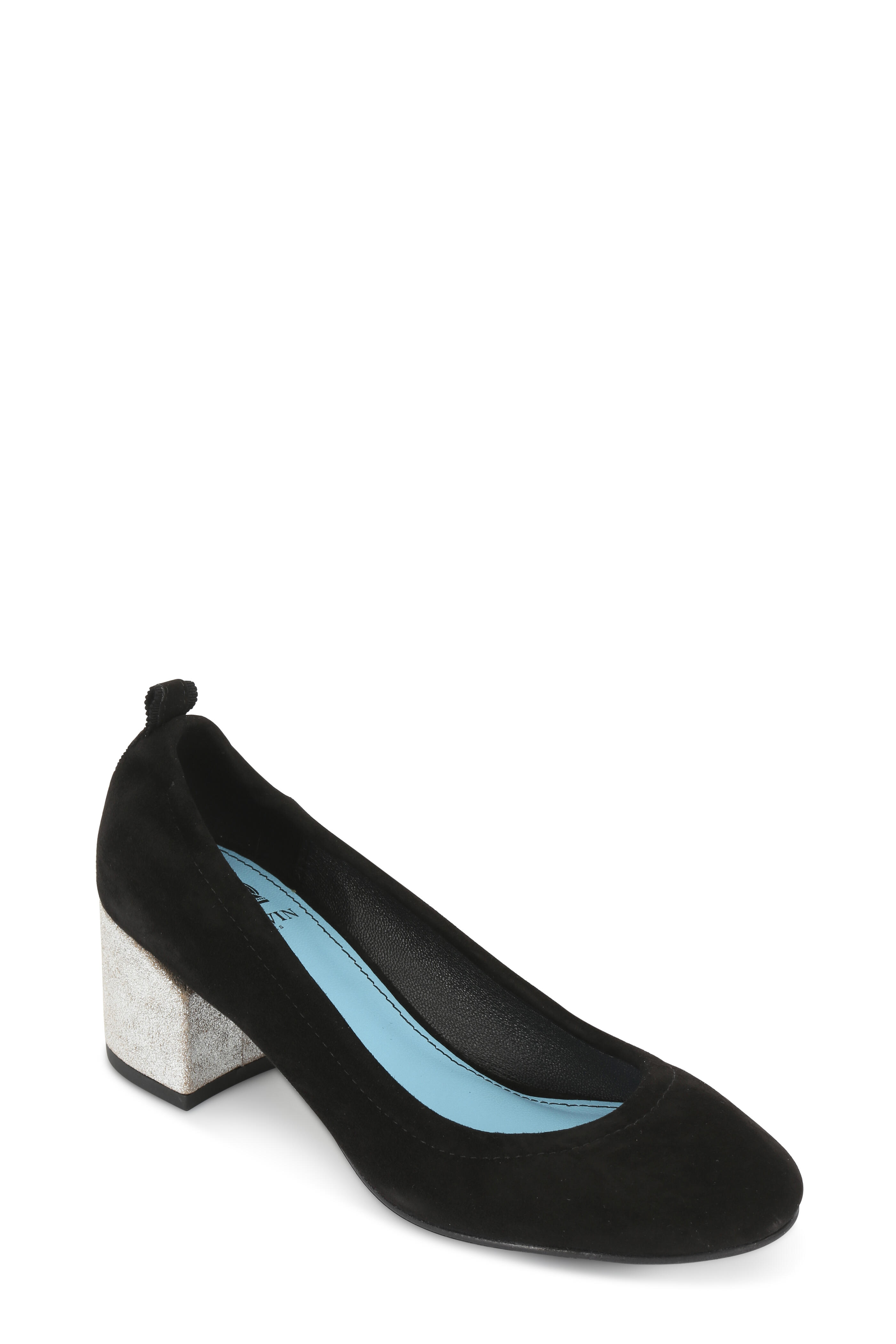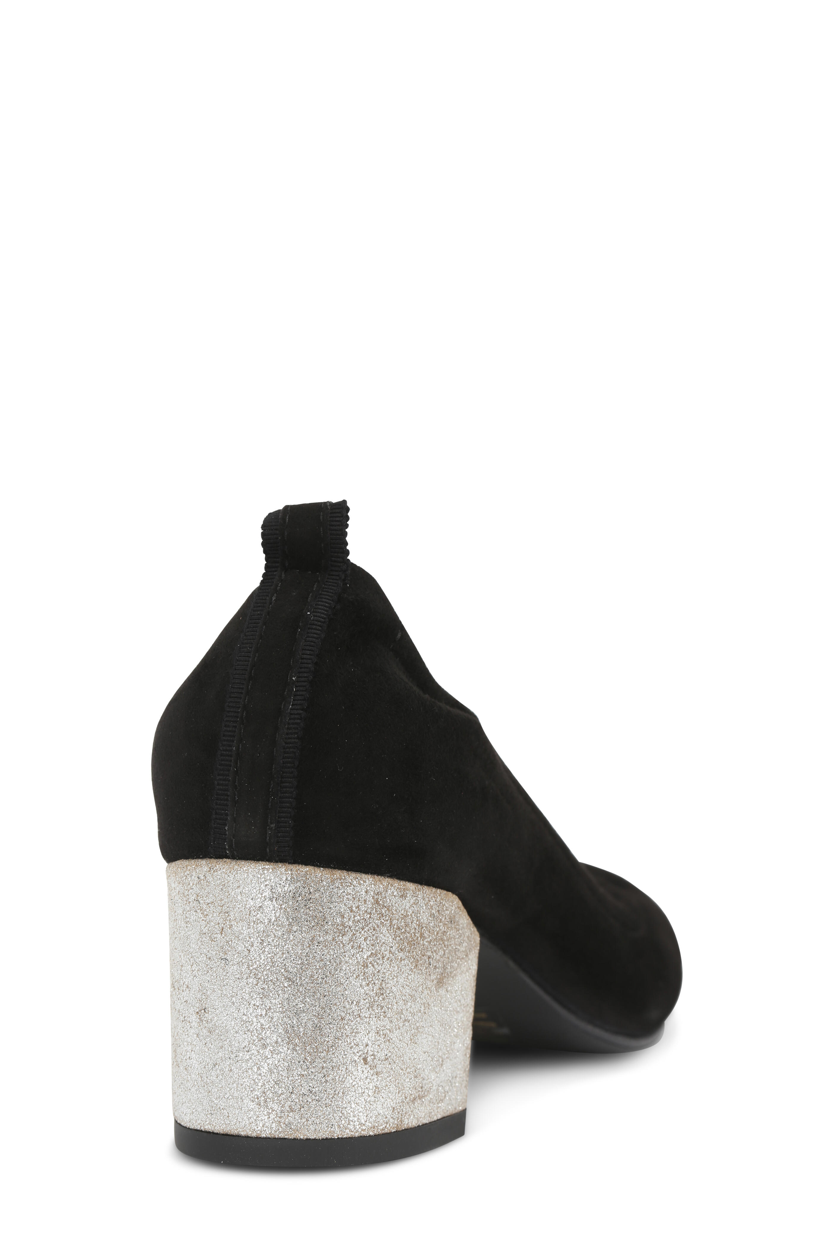 Black Suede Contrast Silver Block Heel Pump, 50mm