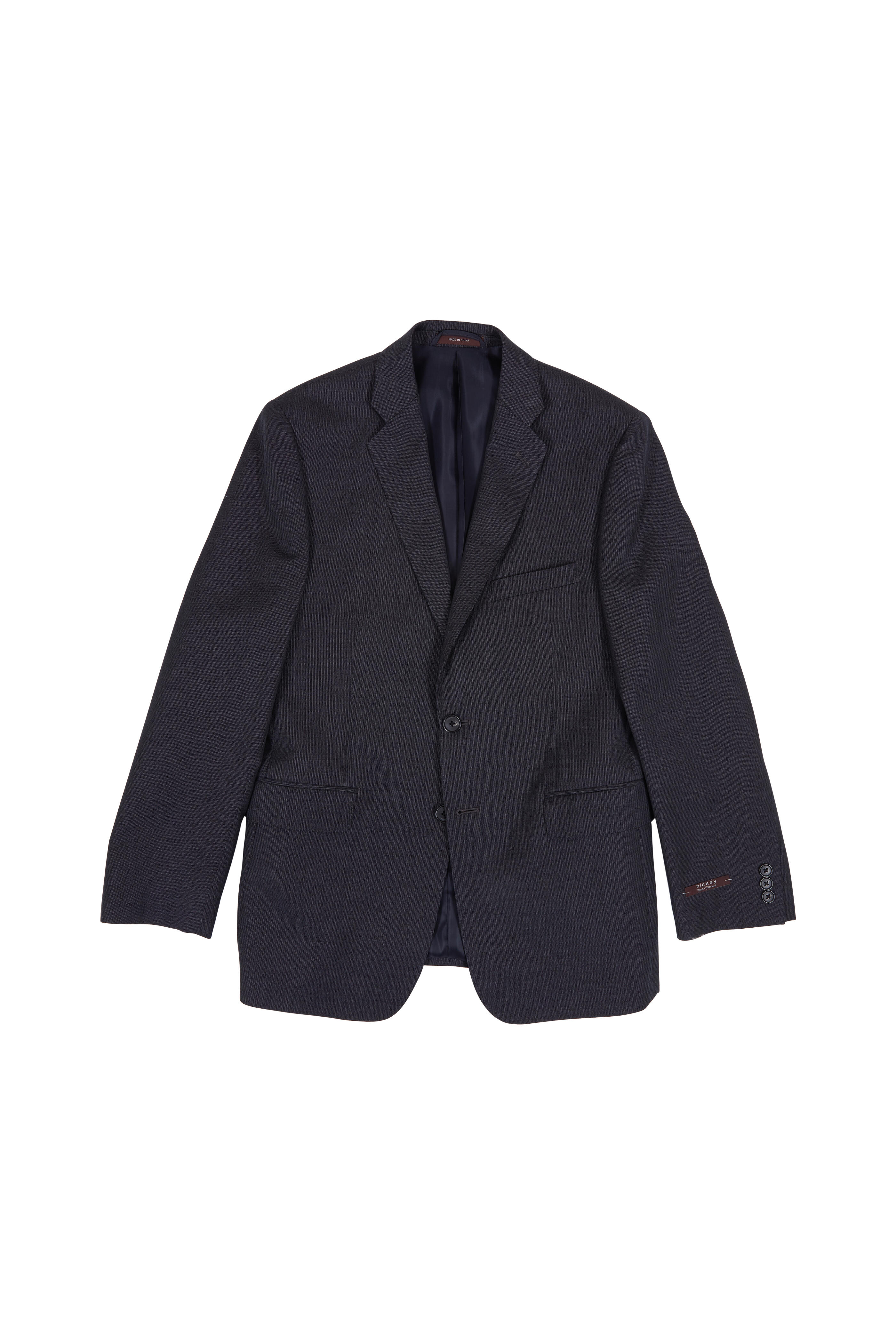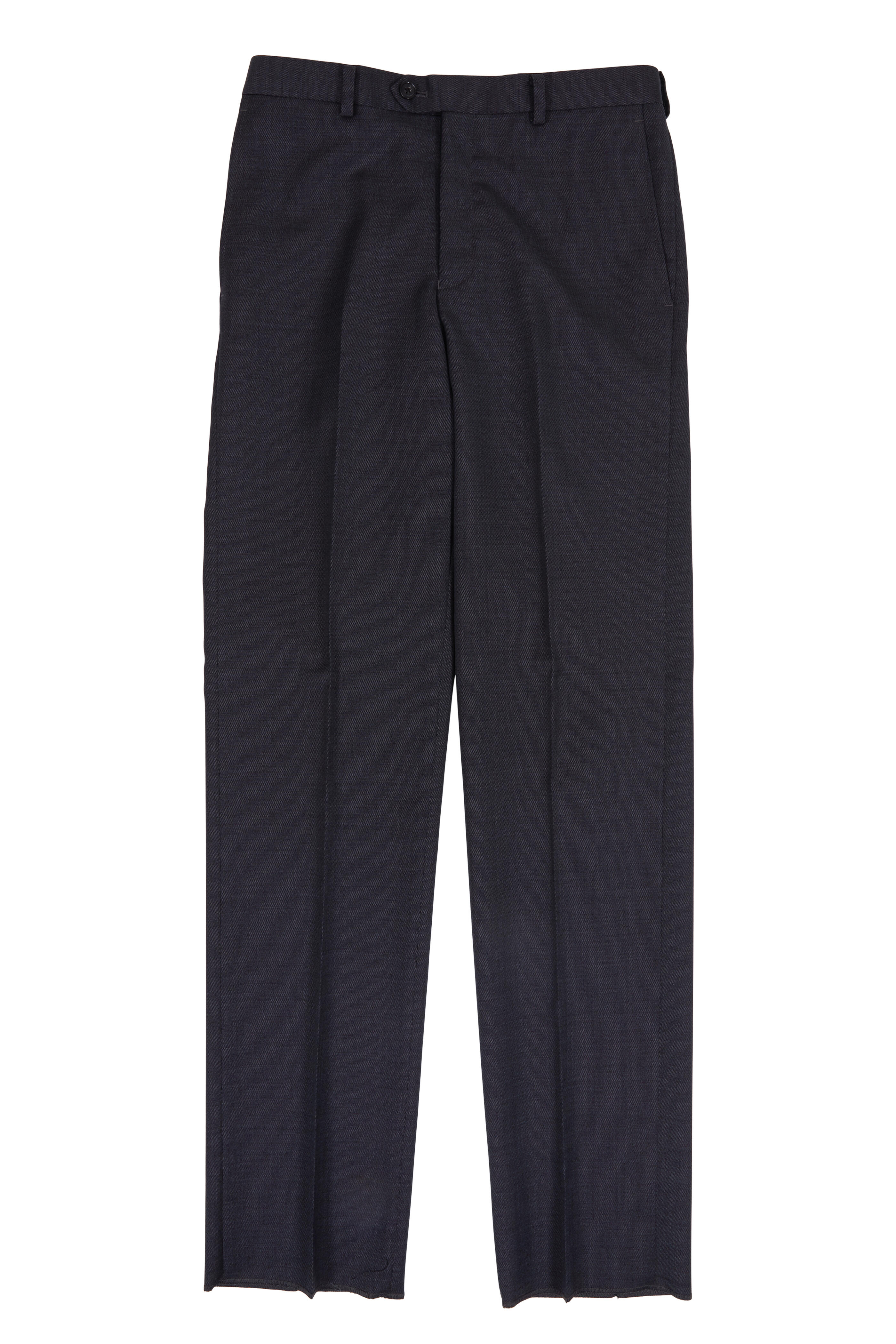 Imported. Jacket: Fully lined. Notched lapels. Two button closure. Chest welt pocket, lower flat pockets. Double vent. Pants: Side slash pockets, back buttoned-besom pockets. Unfinished hem. 100% wool. Dry clean.