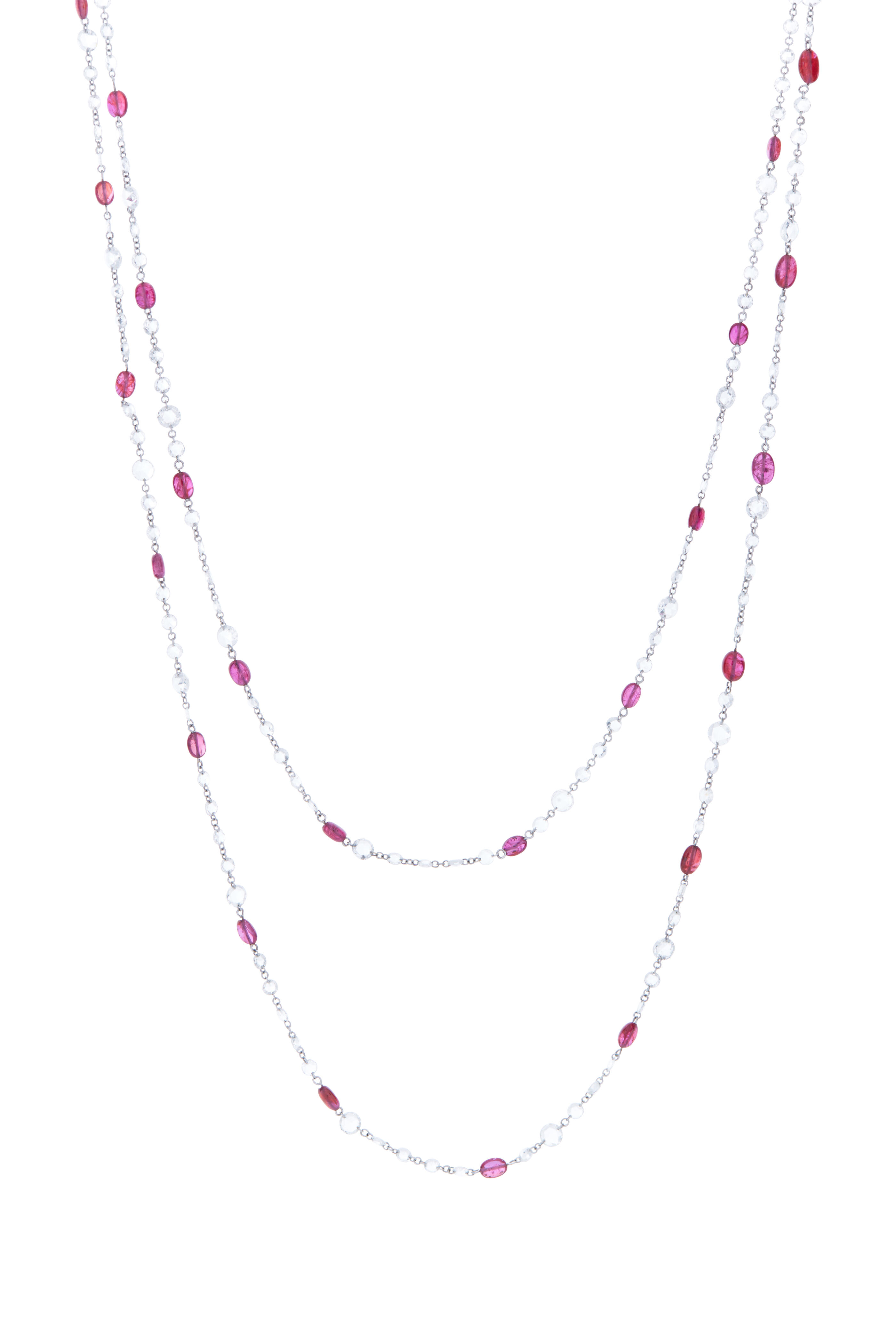 18K white gold. Rubies, 13.52 total carat weight. Diamonds, 12.10 total carat weight. 45"L.