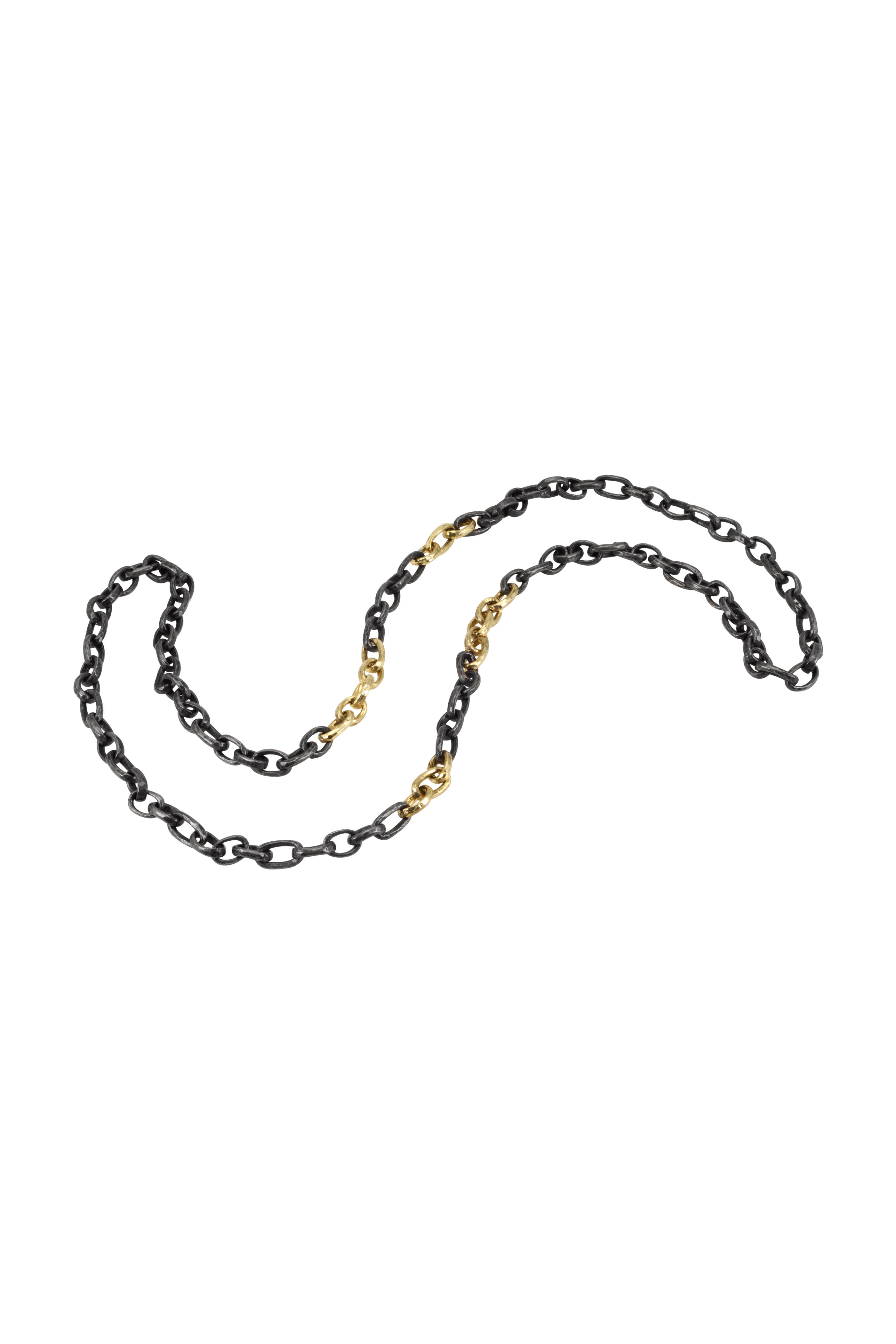 14K yellow gold & oxidized silver. 40"L.