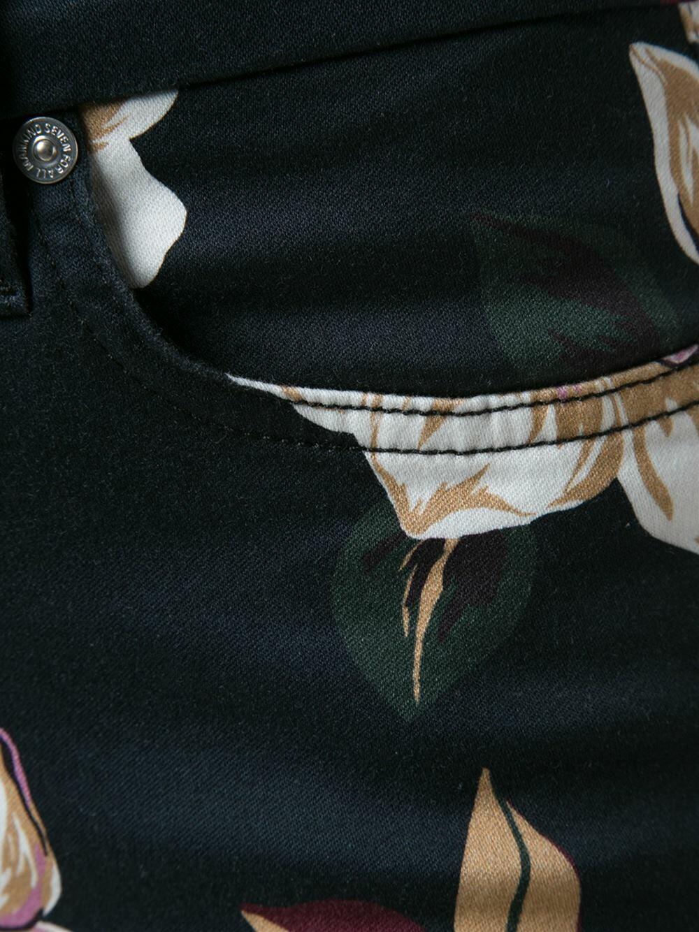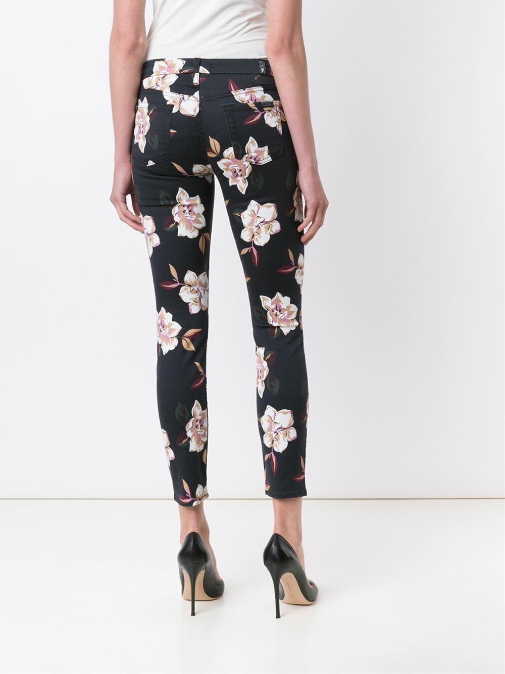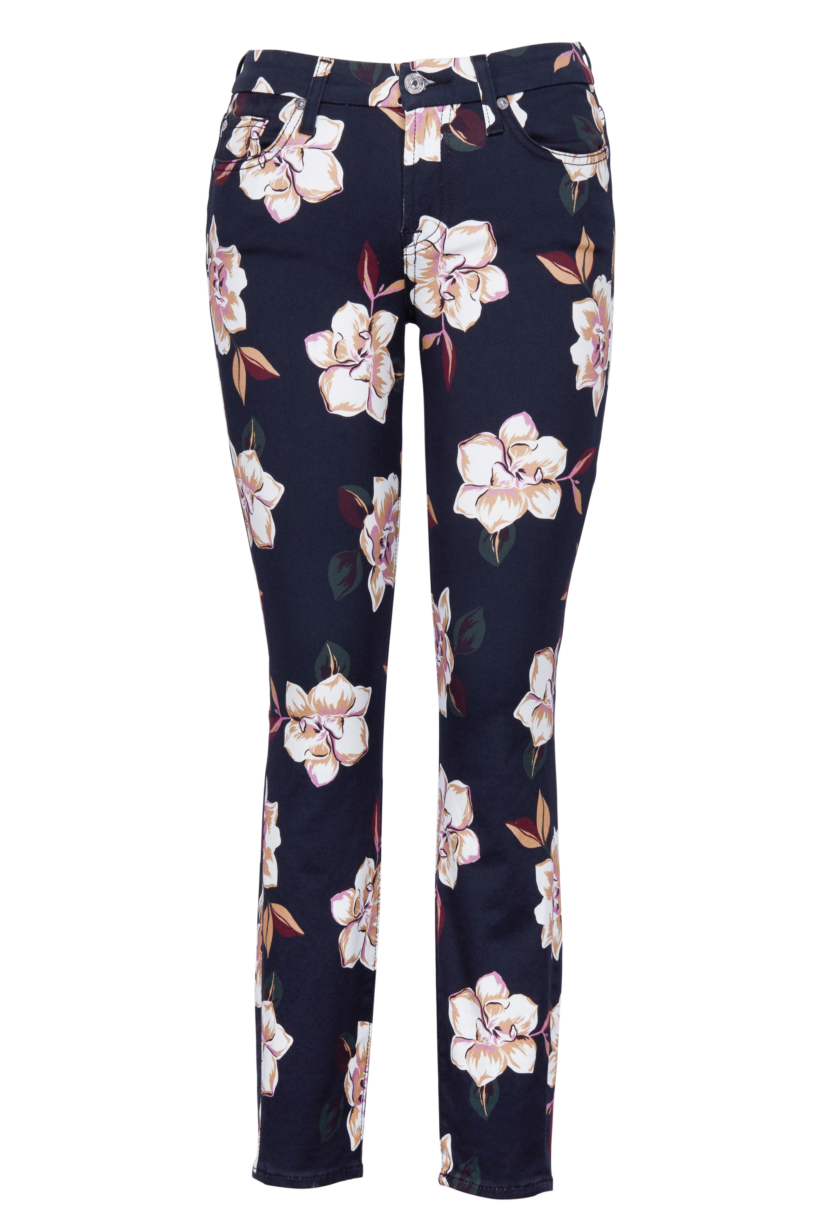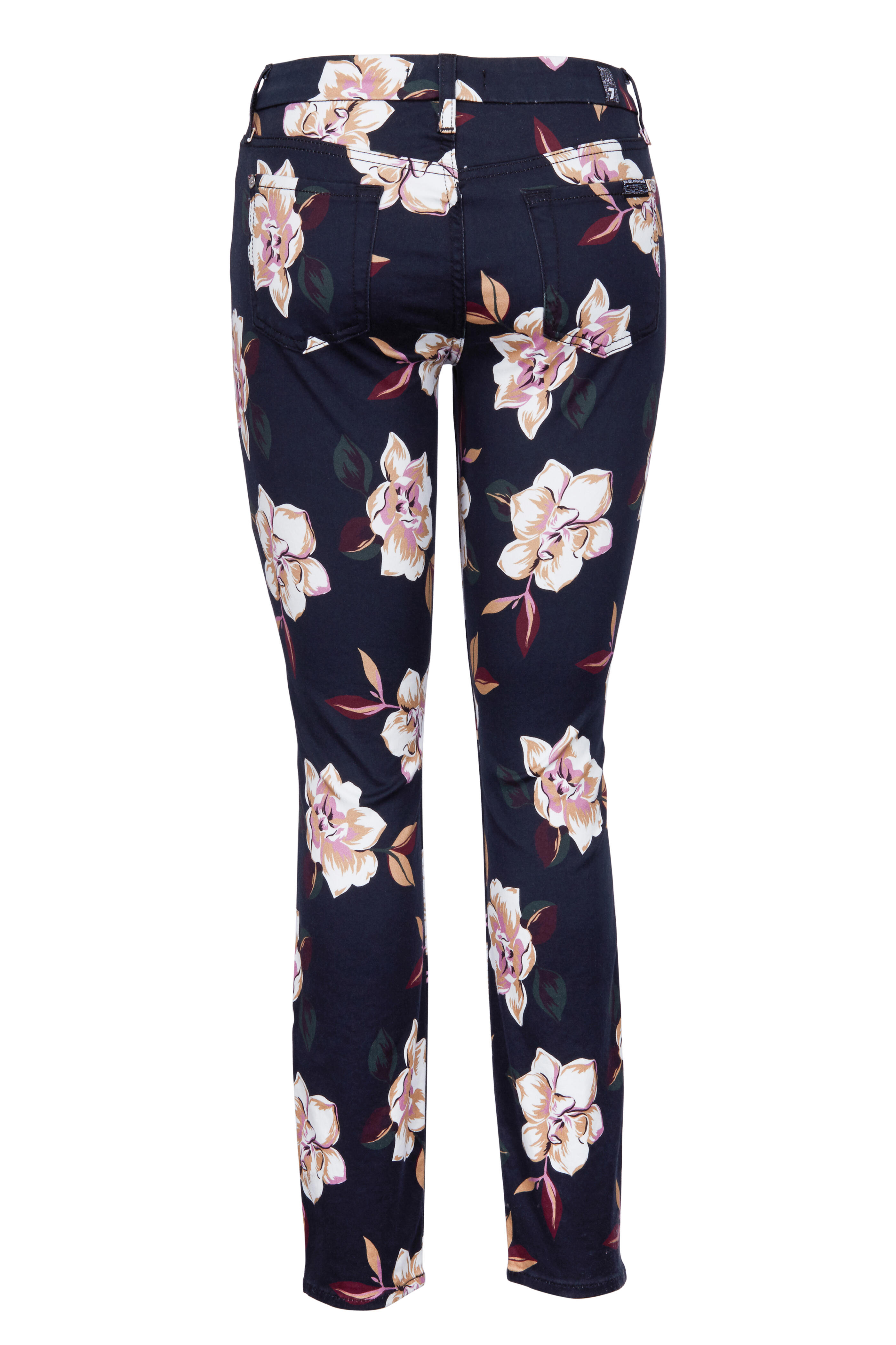 Five pocket styling. Tonal stitching. Imported. Color: Calypso Floral. Front rise: 9". Inseam: 27". Leg opening: 11". 98% cotton, 2% spandex. Machine wash cold.