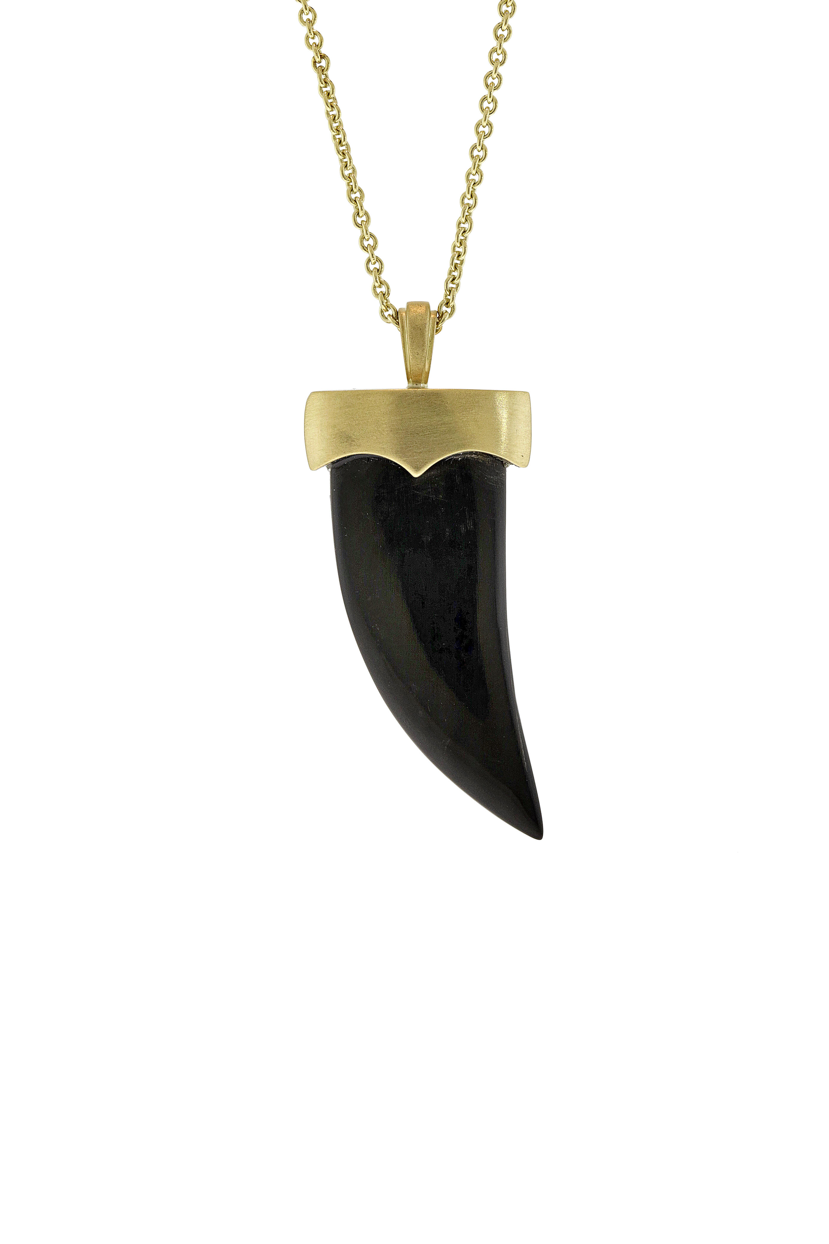 18K Yellow Gold Black Cow Horn Pendant Necklace