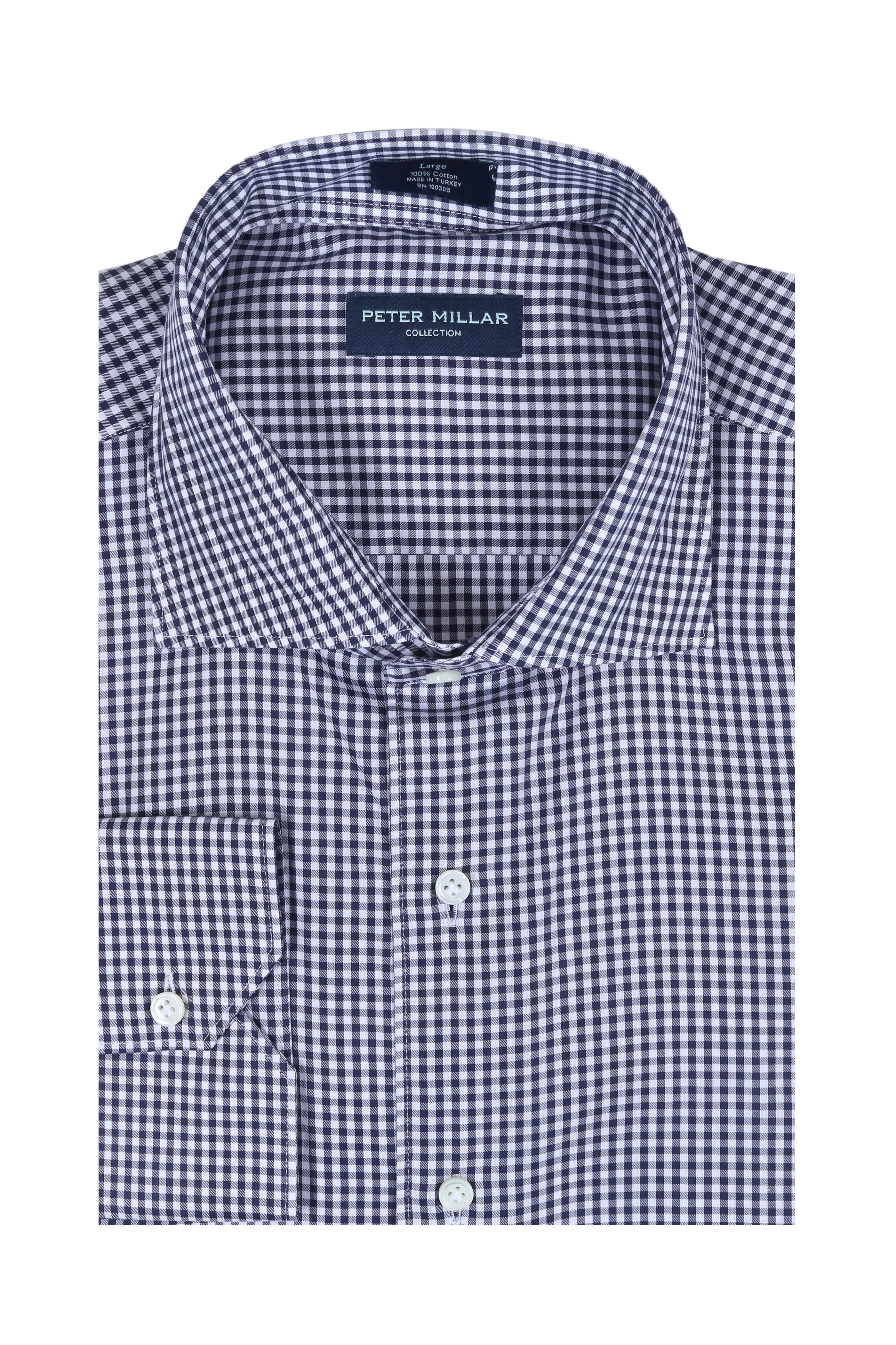 Spread collar. Single button mitered cuffs. Imported. 100% cotton. Machine wash cold.