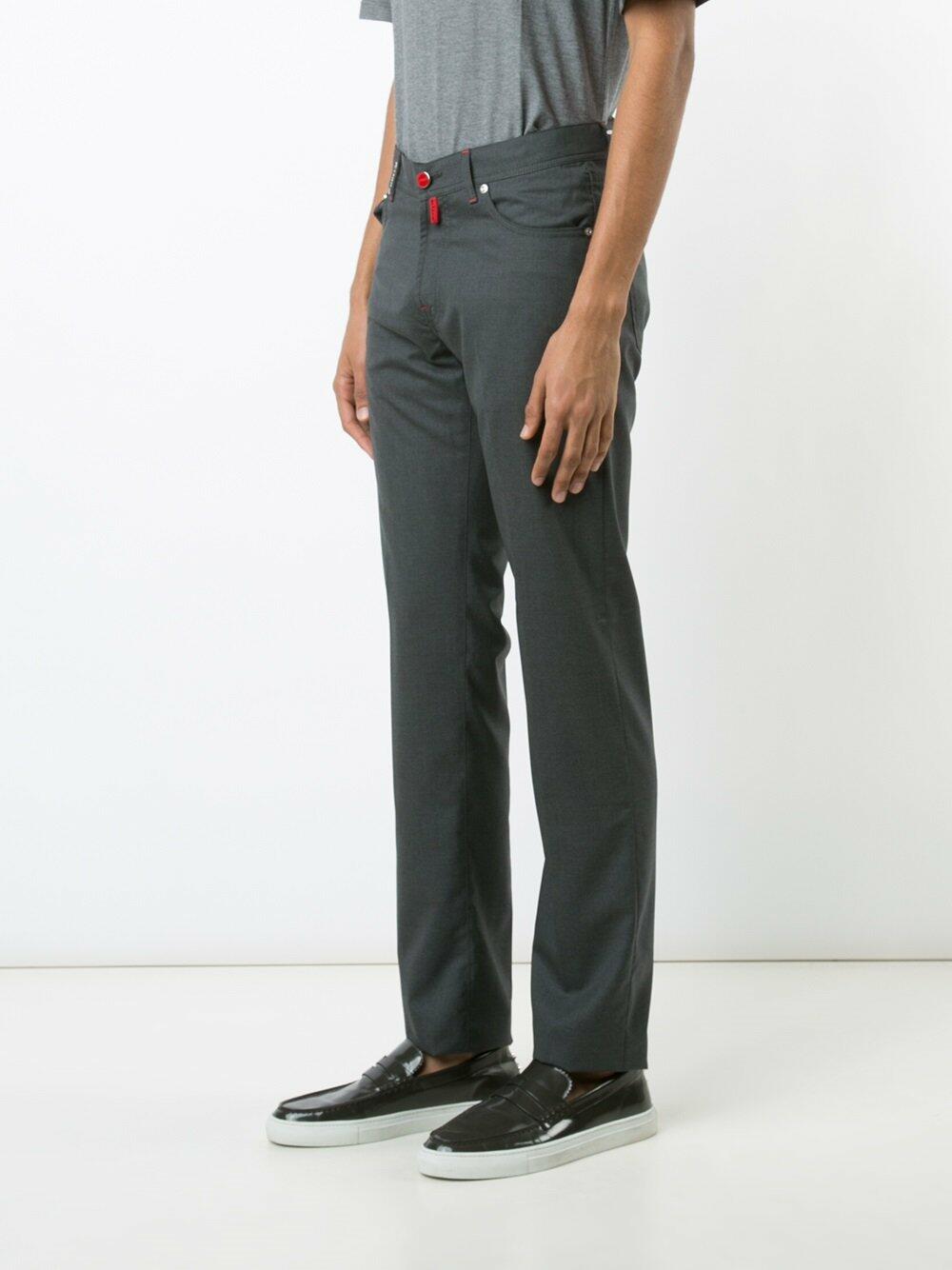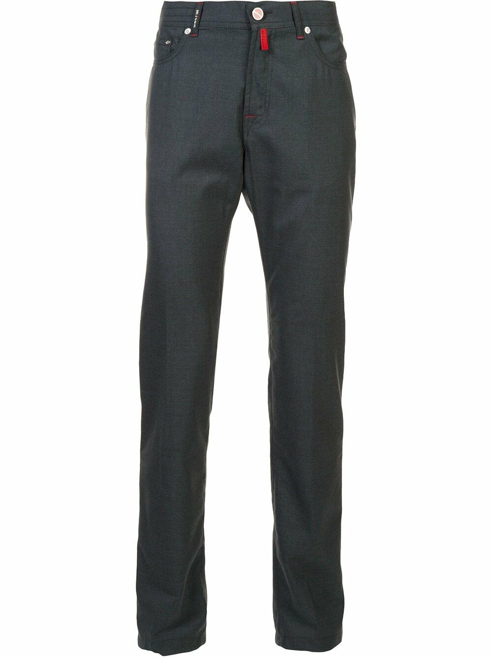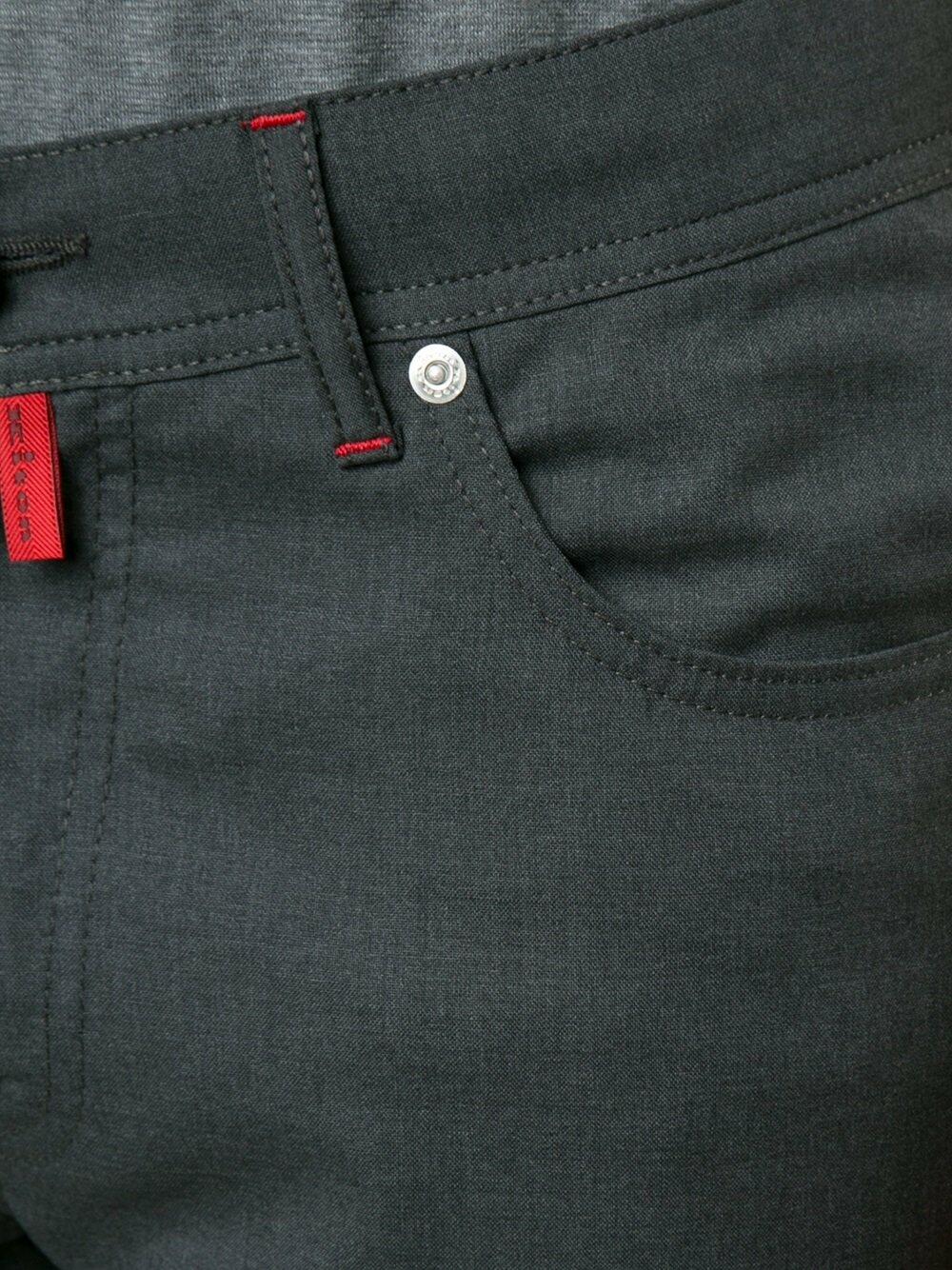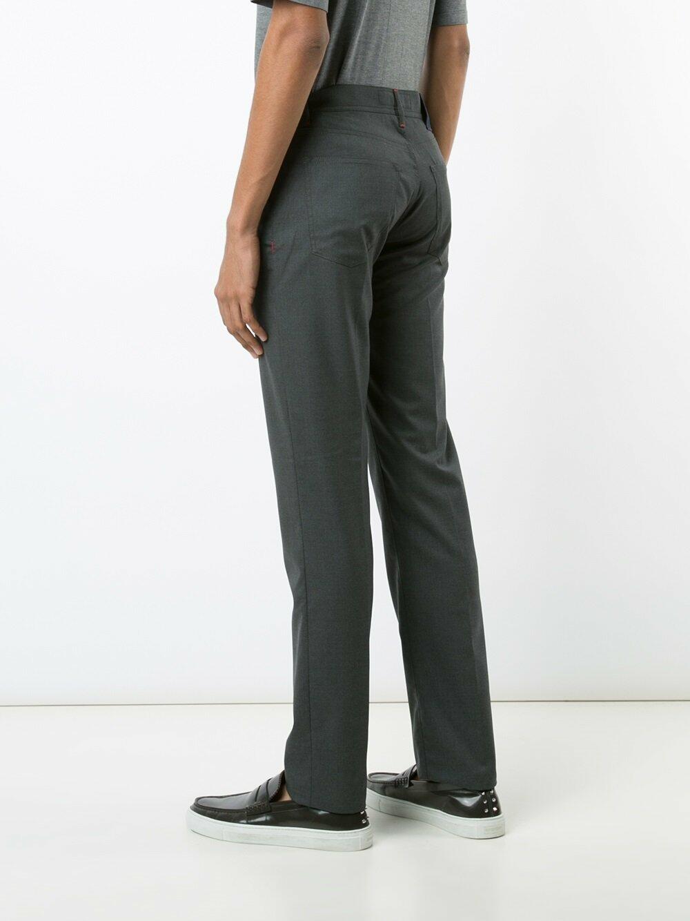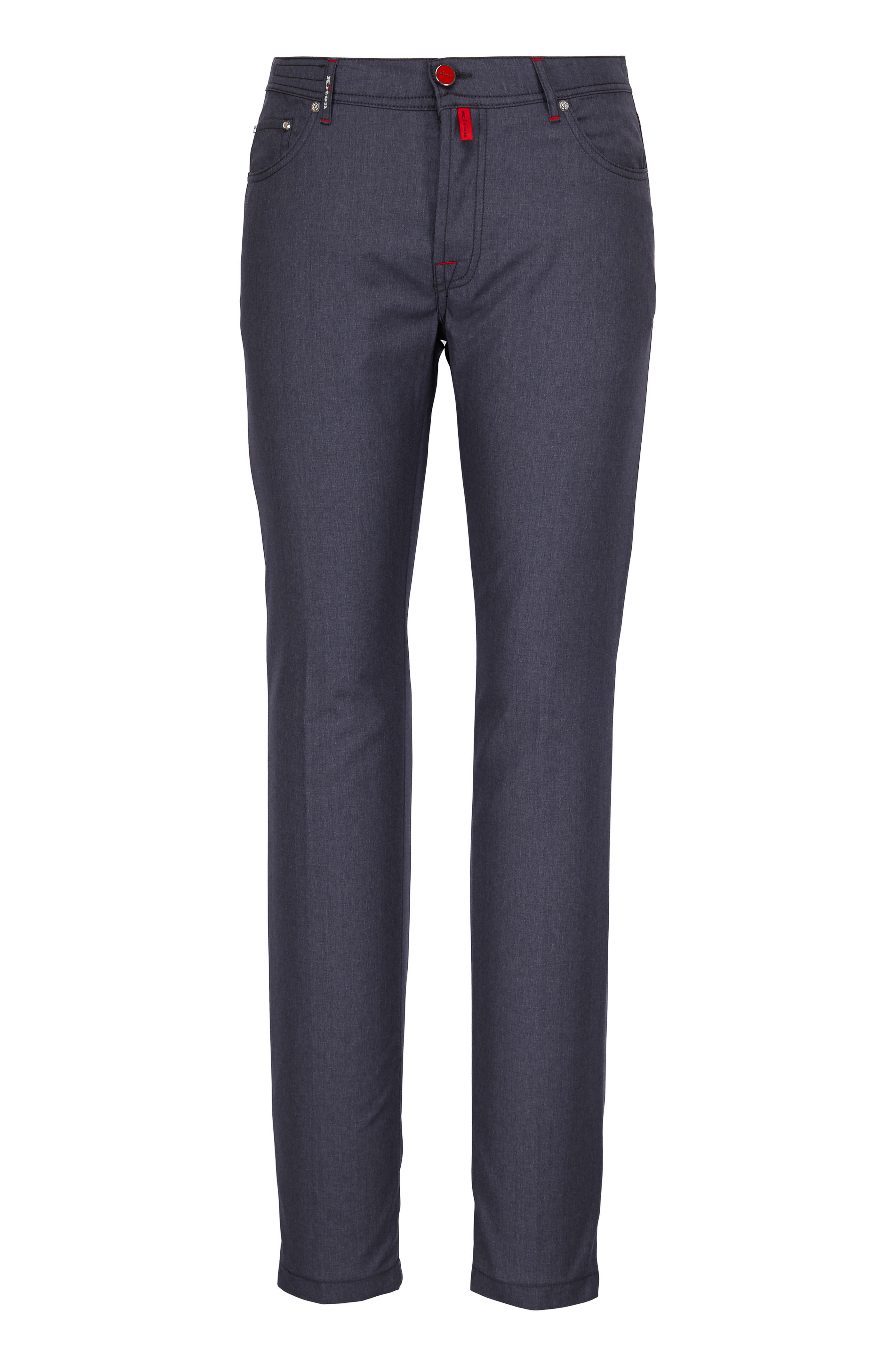 Button fly. Five pocket styling. Made in Italy. Inseam: 34". Leg opening: 15". Rise: 11". 100% wool. Machine wash.
