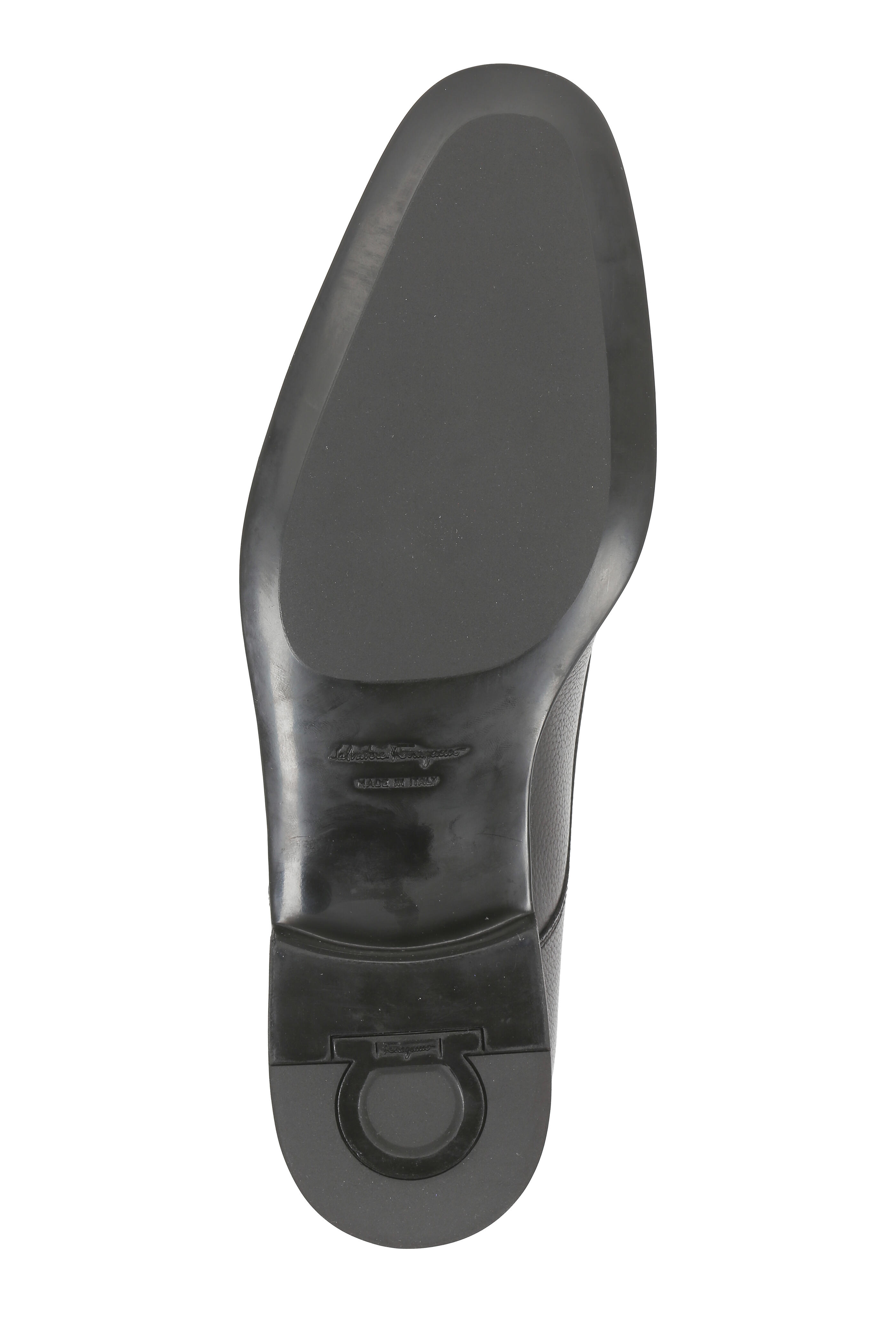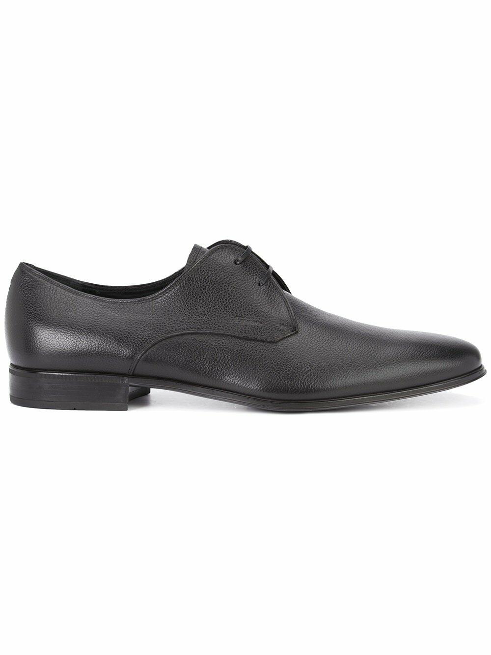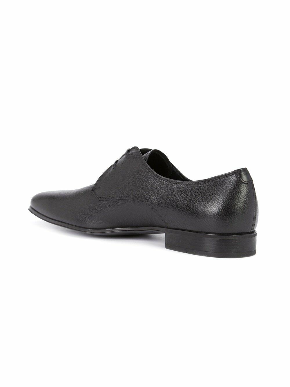 Pebbled calfskin leather. Tapered toe. Two eyelet lace-up closure. Leather lining and insole. Stacked heel. Rubber sole. Made in Italy.