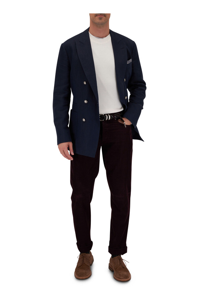 Navy Linen Double Breasted Sportcoat