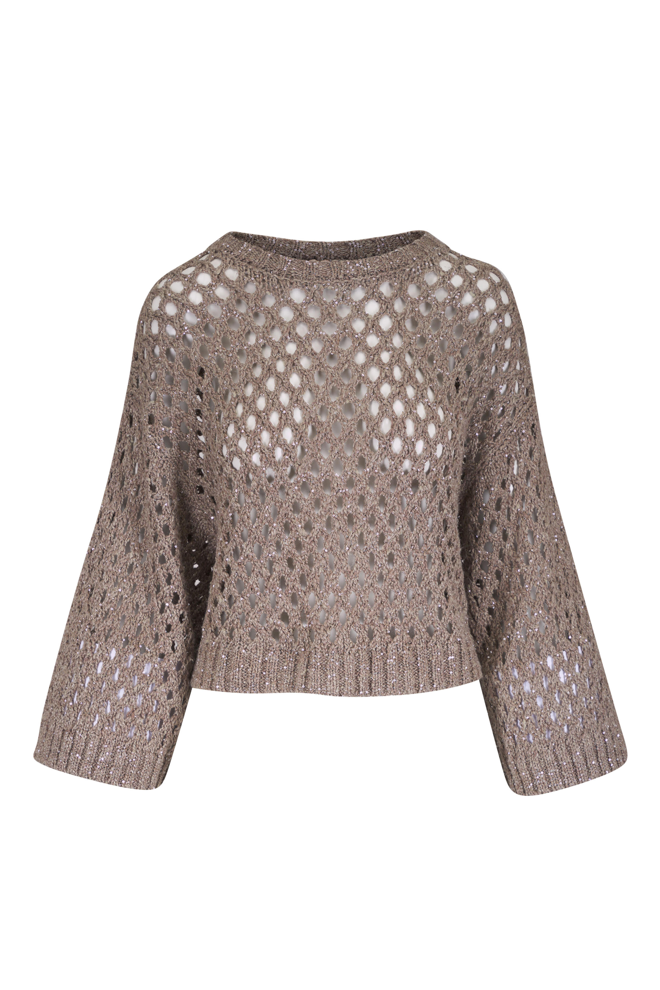 Dark Beige Sequin Open Knit Sweater