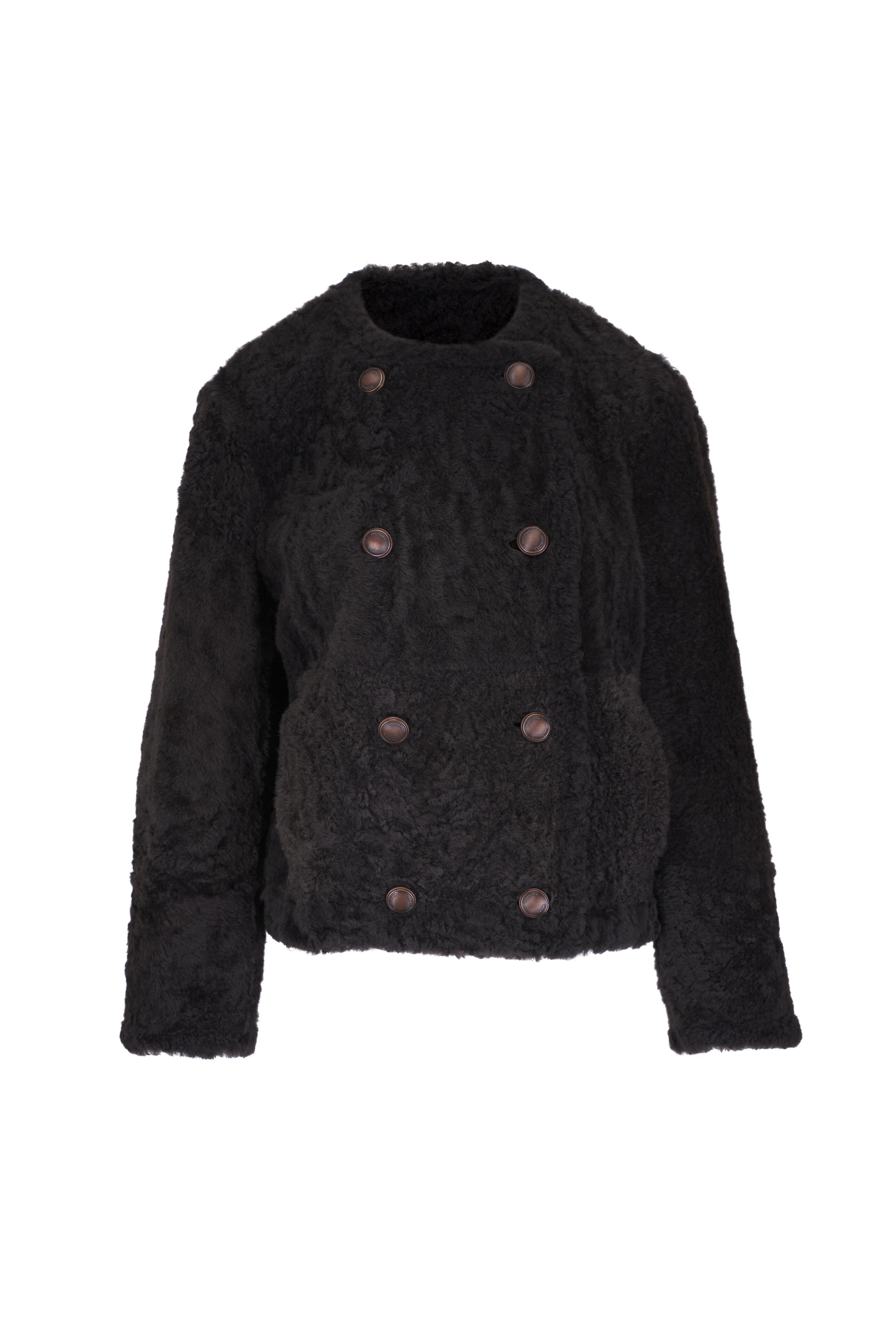 Rust Brown Shearling Reversible Cropped Peacoat