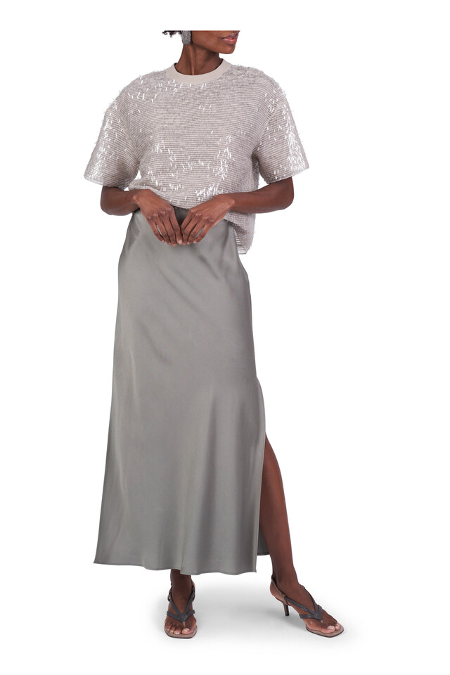 Brunello Cucinelli - Olive Satin Fluid Bias Cut Skirt