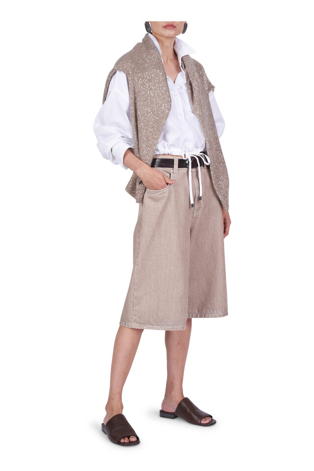 Brunello Cucinelli - Beige Lamé Denim Bermuda Shorts