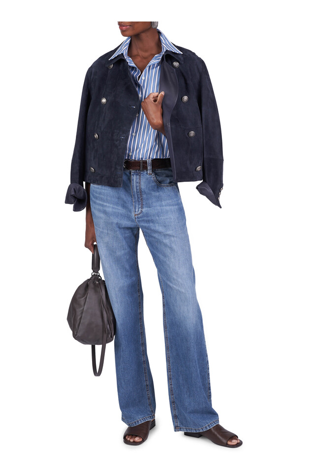 Navy Blue Suede Double Breasted Jacket