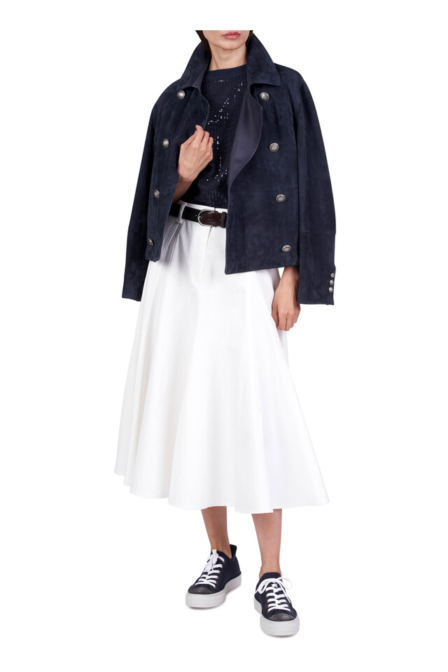 Navy Blue Suede Double Breasted Jacket