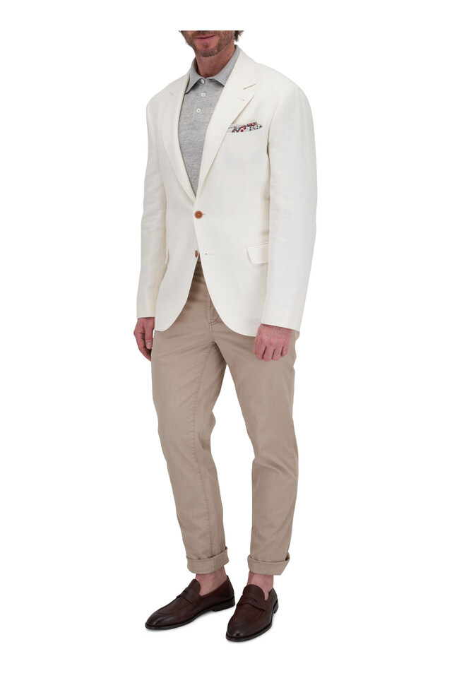White Herringbone Linen Blend Sportcoat