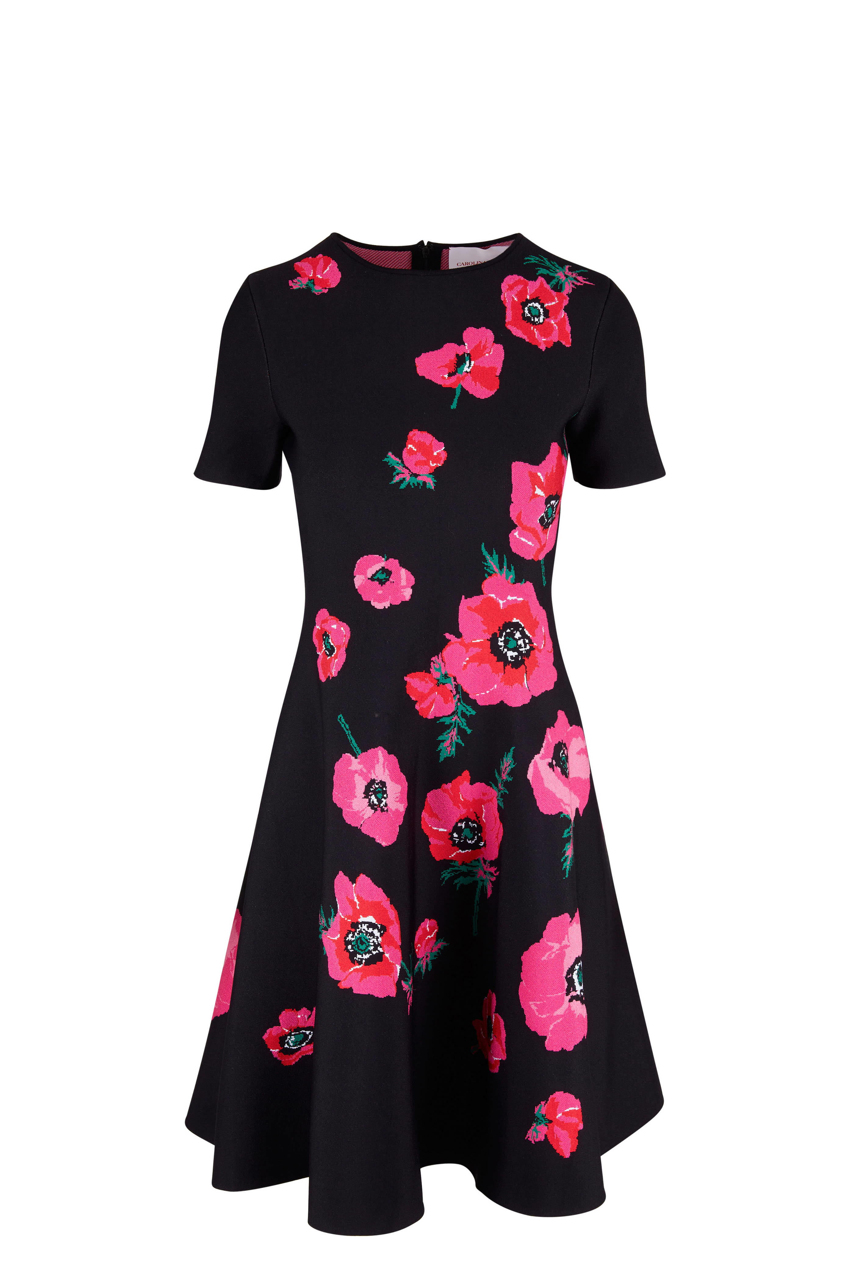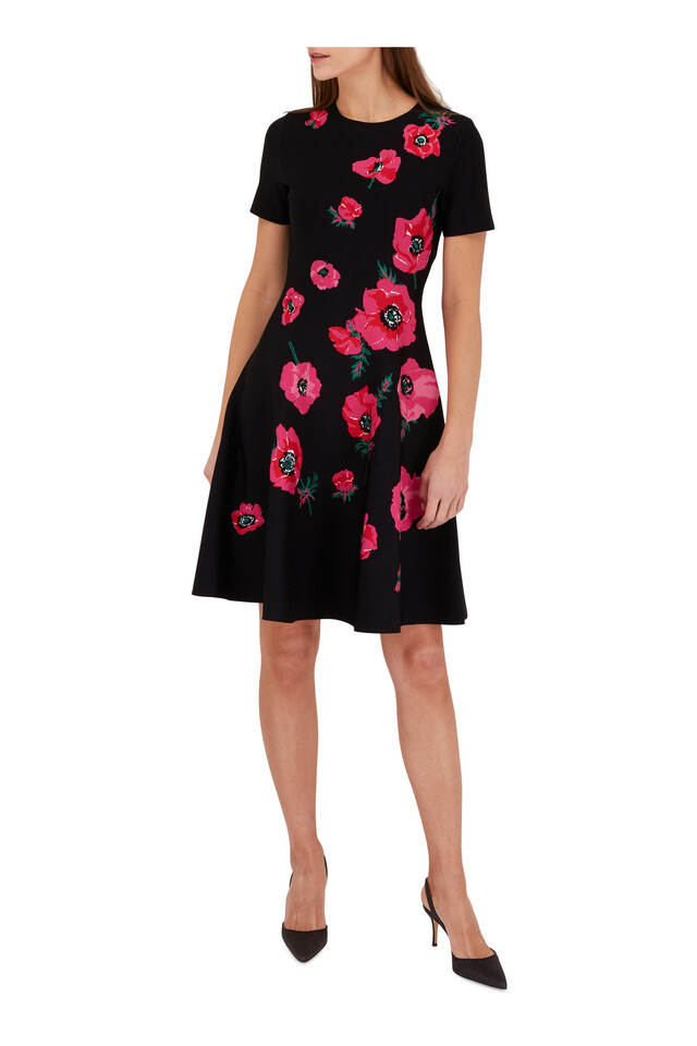 Black Poppy Print Fit & Flare Short Sleeve Dress