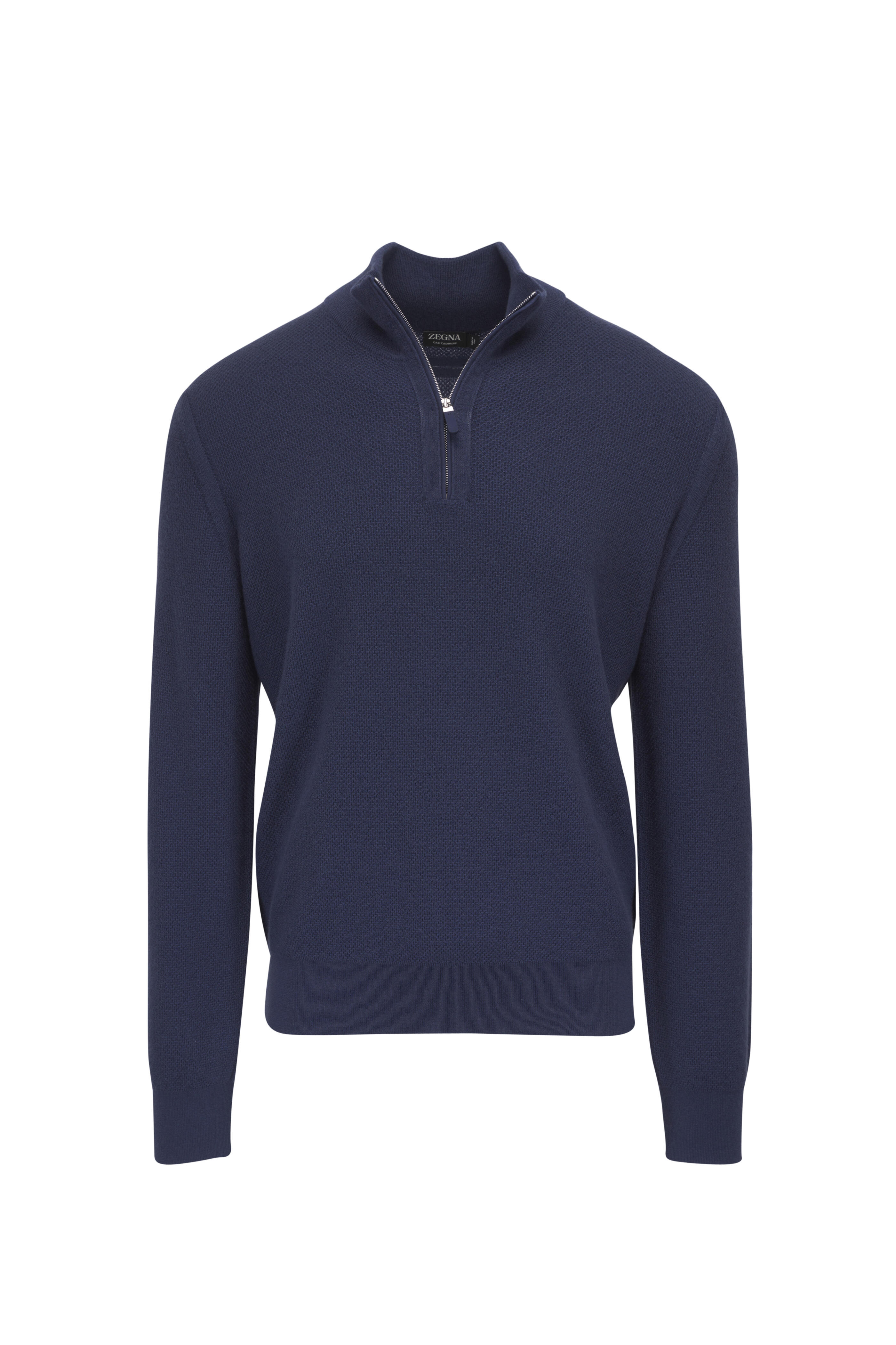 Blue Oasi Cashmere Jacquard Quarter Zip Pullover