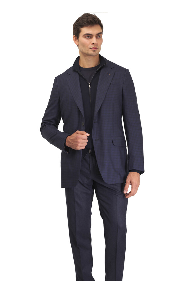 Navy Tonal Check Cashmere & Silk Sportcoat