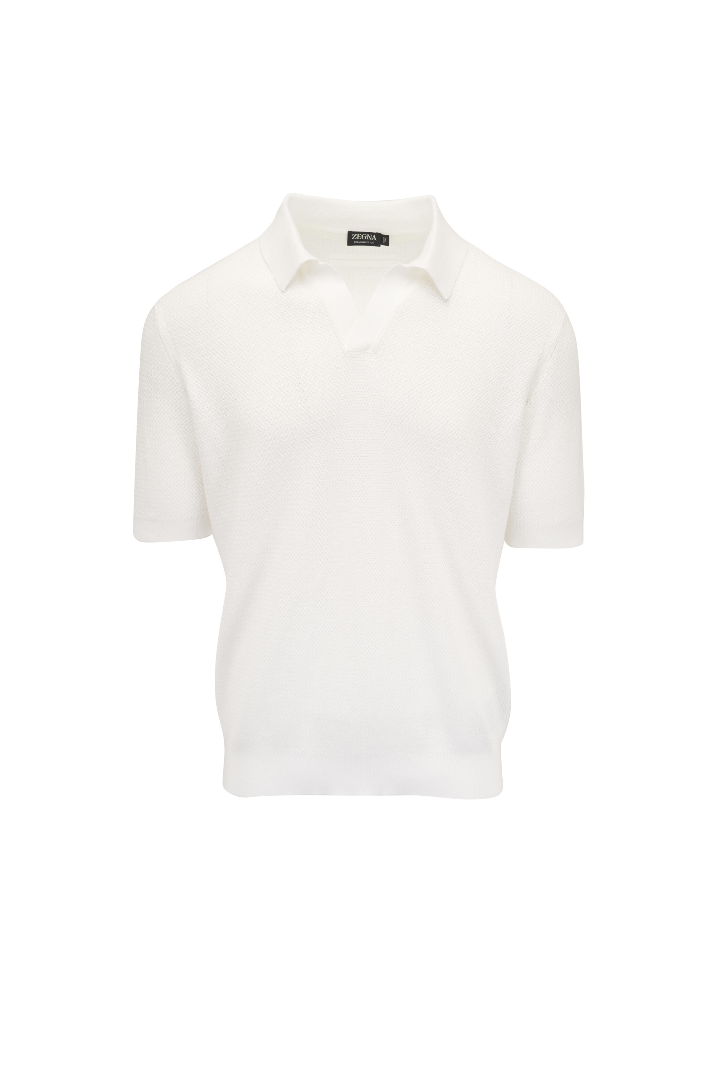 Zegna - White Jacquard Johnny Collar Polo